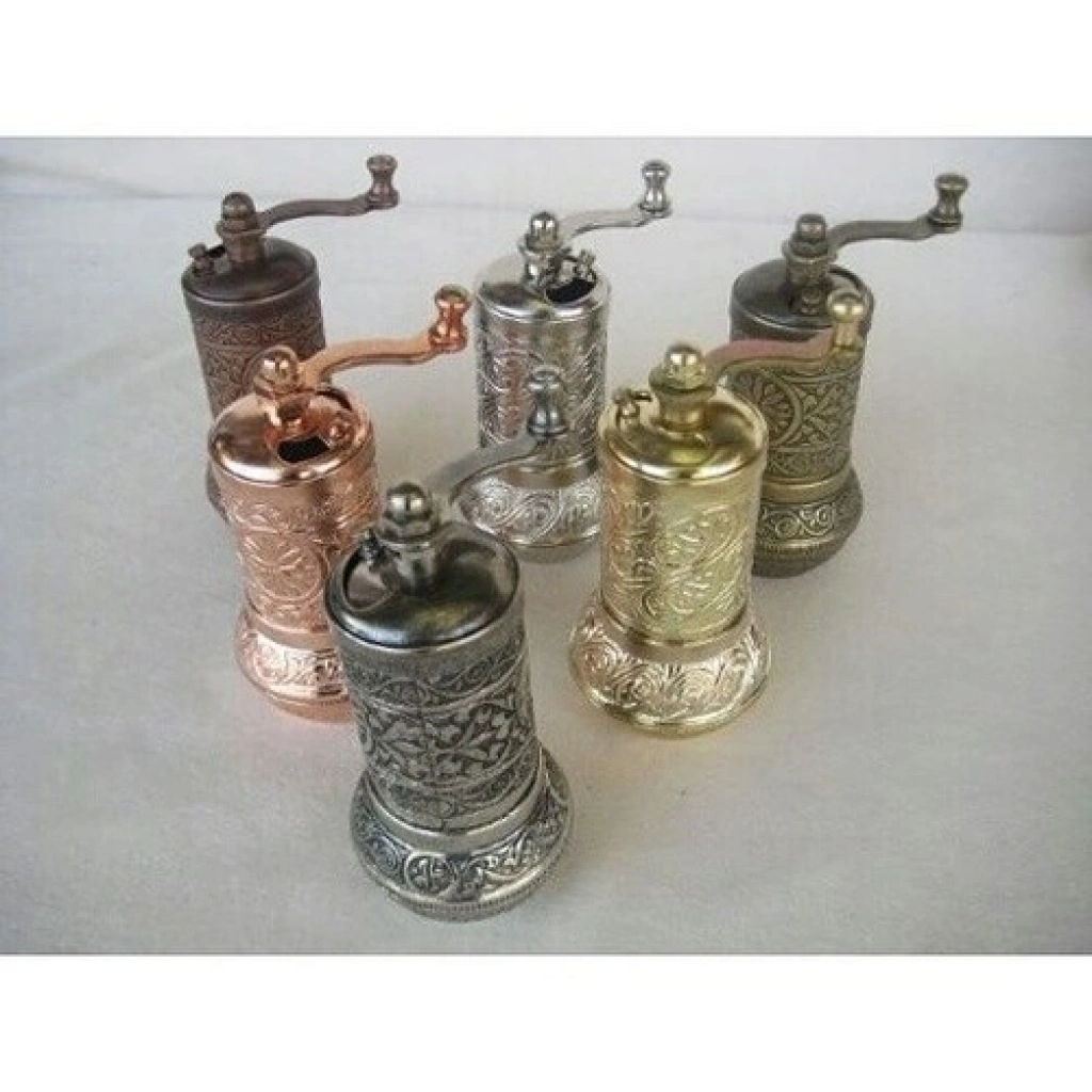 Osmanlı Motifli Kahve ve Baharat Değirmeni ile misafirlerinizi kıskançlıktan çatlatın...Nostalji kokan Osmanlı Motifli Kahve ve Baharat Değirmeni sayesinde her türlü kahvelerinizi ve baharatlarınızı daima taze, mis kokulu ve ilk günkü nefaseti ile kendiniz öğütebilir ve ayrıca sofralarınıza ayrı bir renk katabilirsinizBulaşık makinesinde yınız tavsiye edilmez.Kararmaya karşı garantilidir sirkeli suyla temizlendiğinde ilk günkü görüntüsüne kavuşacaktırRenk : GümüşÜrün Ölçüsü :Genişlik: 6 cmYükseklik: 7,5 cmÇap: 3,2 cmPaket İçeriği :1 Adet Osmanlı Motifli Kahve ve Baharat Değirmeni