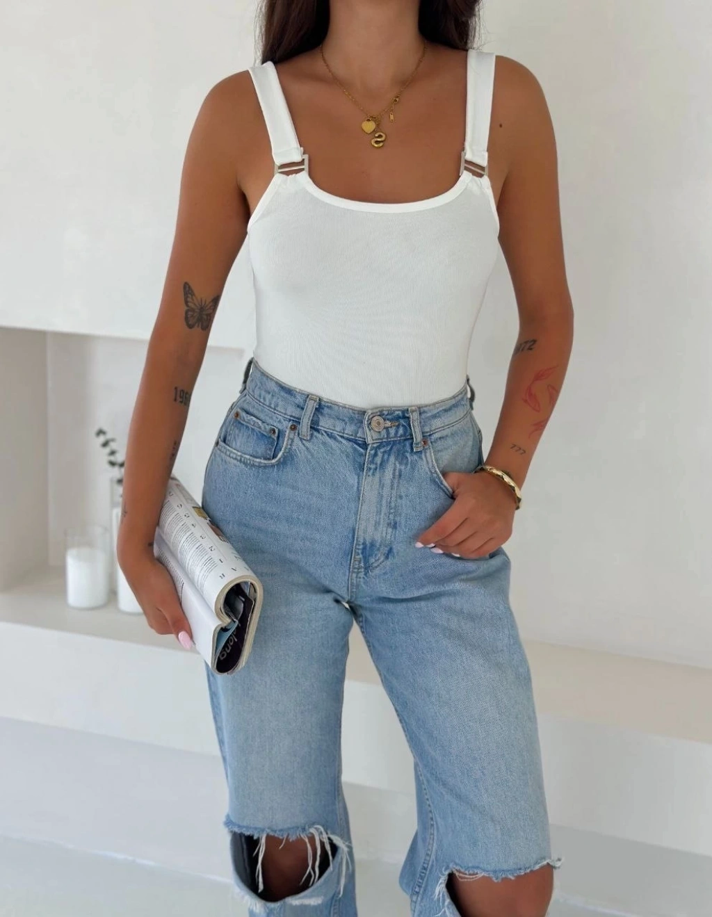 Ottoman toka askılı bluz beyaz s4194--Ottoman toka askılı bluz beyaz s4194, şıklığı ve rahatlığı bir arada sunar. İnce detayları ve zarif tasarımıyla göz alıcı bir görünüm sağlar. Yüksek kaliteli kumaşı sayesinde uzun süre dalılığını korur. Askılı modeliyle yaz aylarında serin ve şık bir tercih sunar. Her tarza uyum sağlayabilen beyaz rengi ile kombinlerinize şıklık katar. Günlük kullanıma uygun olan bu bluzla hem şık etkinliklerde hem de günlük hayatta stilinizi konuşturabilirsiniz. Kadın giyim kategorisinde yer alan bu bluzu gardırobunuza ekleyerek tarzınıza tarz katabilirsiniz.