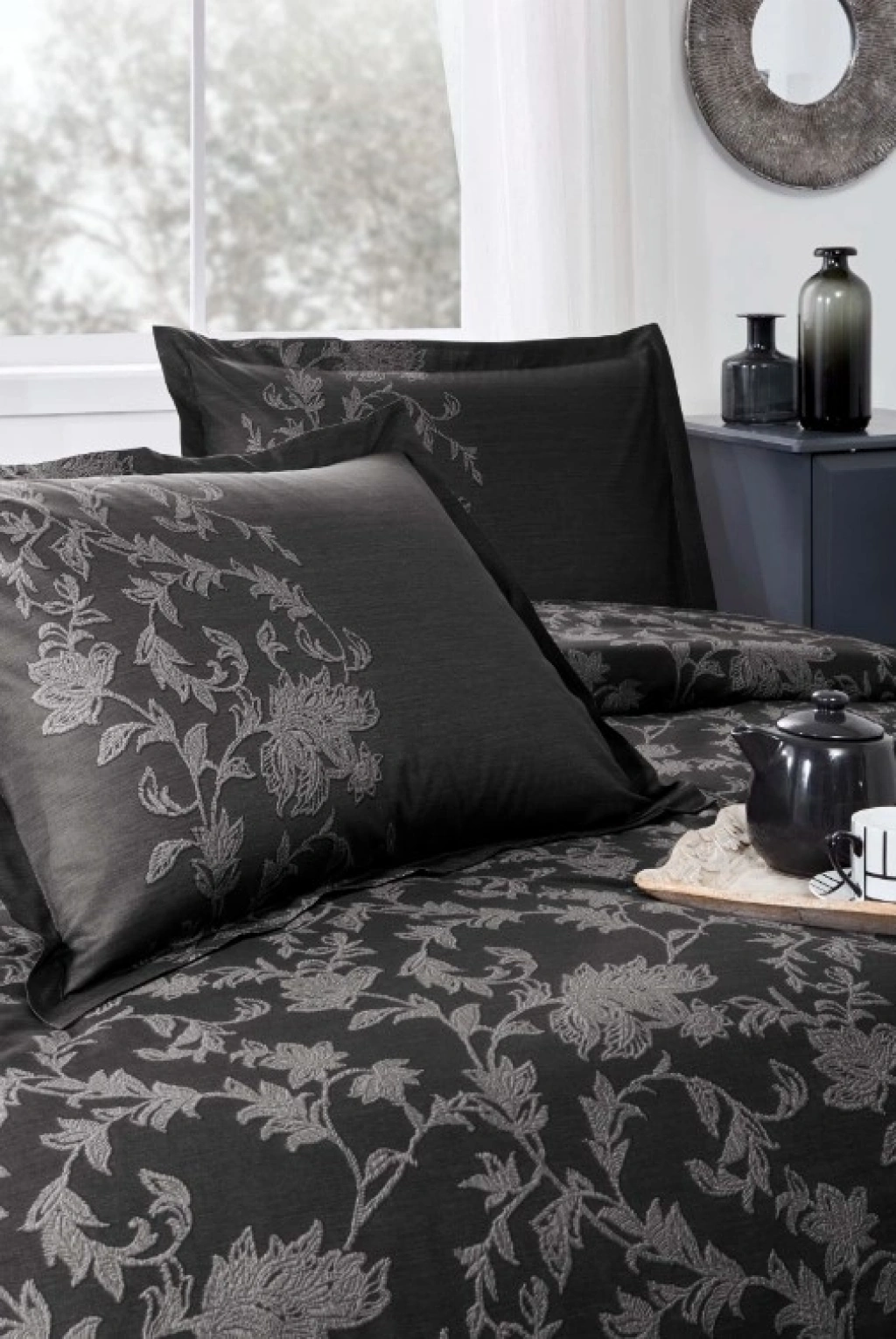 Klein Nakışlı Çift Kişilik Nev Takımı Patara Gri