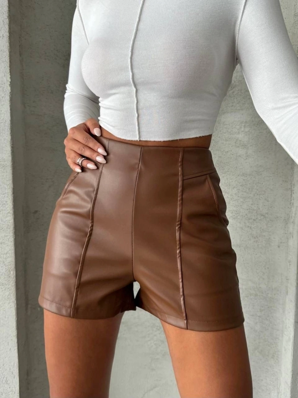 Parçalı cepli deri şort taba w26312--Parçalı cepli deri şort ile şıklığınızı ve tarzınızı ön plana çıkarın. Yaz aylarında rahatlıkla tercih edebileceğiniz bu şort, hem şık hem de konforlu bir seçenektir. Ürün Özellikleri: Yüksek kaliteli deri malzemeden üretilmiştir. Bel kısmında şık ve kullanışlı bir bağcık detayı bulunmaktadır. Ön kısmında iki adet cebe sahiptir, pratik kullanım sunar. Klasik kesimi ile her tarz kıyafetinizle uyum sağlar. Günlük kullanıma uygun, hareket özgürlüğü sunar. Bu parçalı cepli deri şort ile tarzınızı konuşt, kendinizi özgür hissedin!