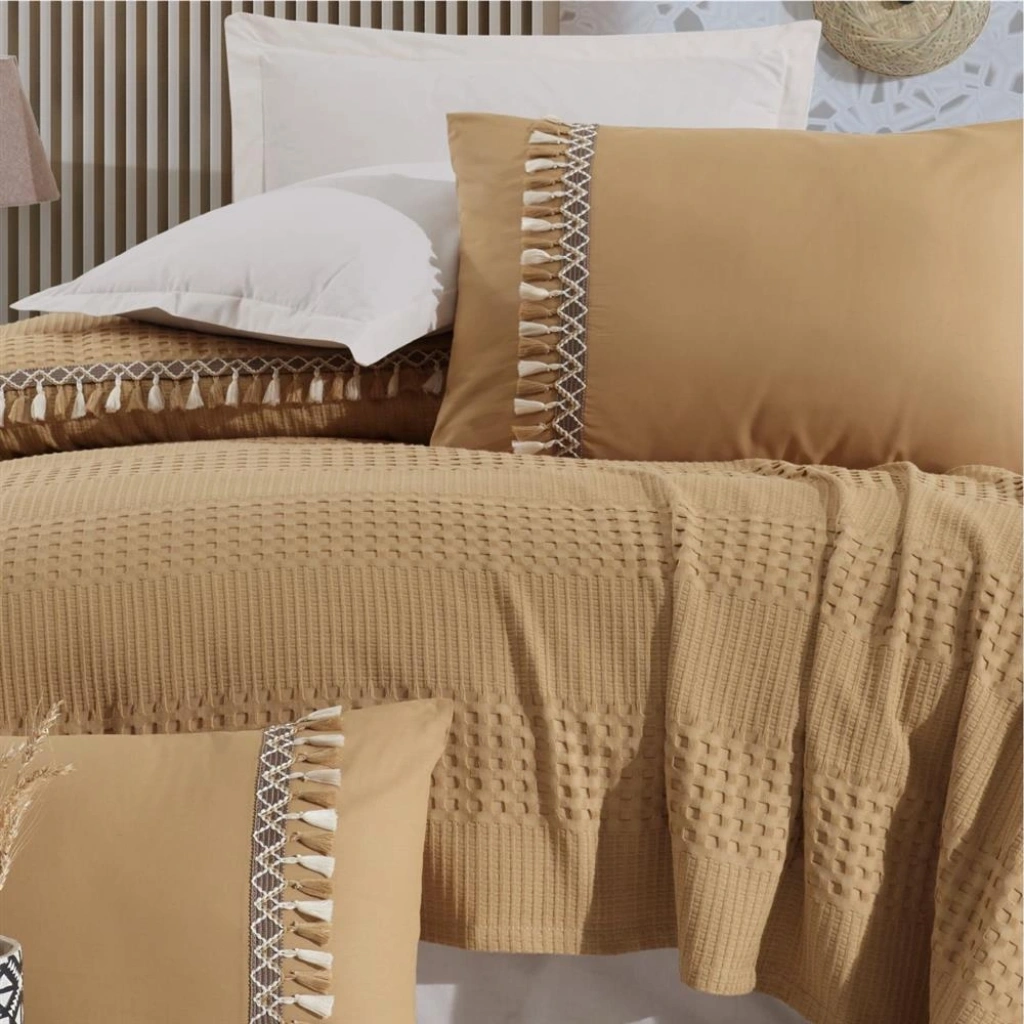 Ürün Ölçüleri• Pike: 220x240 cm • Çarşaf: 240x260 cm • 2 Adet Nakışlı Yastık Kılıfı: 50x70 cm  Ürün Özellikleri• Ürün %100 pamuktur. • 57 tel iplikten üretilmiştir.  Yı Talimatı • 30 Derecede ters çevirerek yıkayınız. • Çamaşır suyu kullannız önerilir. • Kurutma makinesinde kurutulabilir.