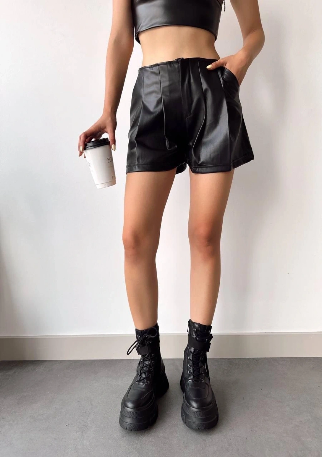 Pileli deri şort siyah h240053--Yeni sezonun trend parçalarından pileli deri şort siyah h240053, şıklığı ve rahatlığı bir arada sunuyor. Ürün Özellikleri: Yüksek kaliteli deri malzemeden üretilmiştir. Klasik siyah rengiyle her kombinle uyum sağlar. Pileli detaylarıyla şık ve modern bir görünüm sunar. Bel kısmında lastikli detayı bulunmaktadır, rahat bir kullanım sunar. Özel tasarımıyla dikkat çeker, tarzınıza farklılık katar. Şıklığıyla öne çıkan pileli deri şort siyah h240053, kadın giyim kategorisindeki favori parçalarınızdan biri olmaya aday! Hemen sepetinize ekleyin ve moda dolu günlerinizde stilinizi konuşt.