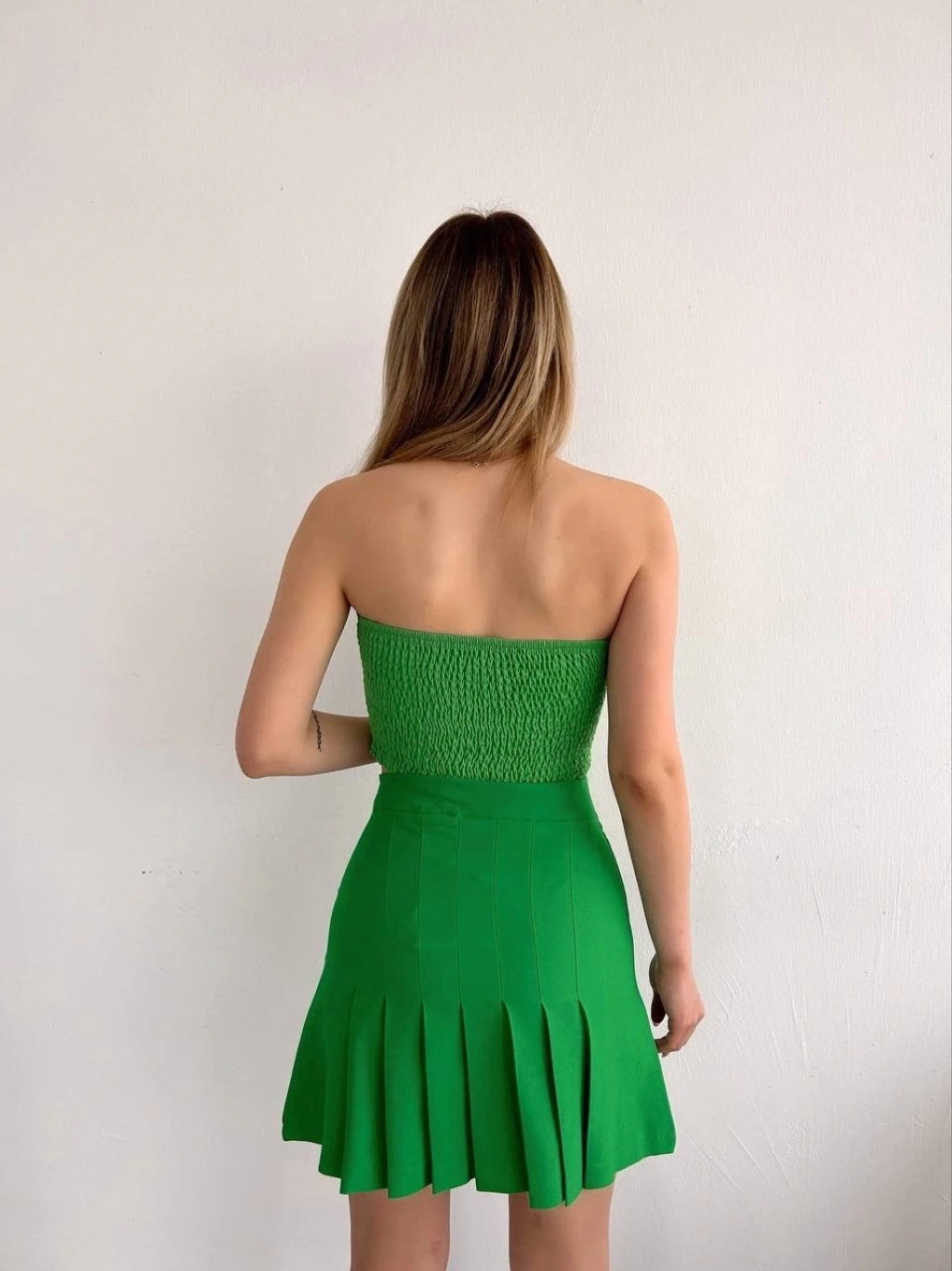 Pileli düğmeli etek açık yeşil s24811--Şık ve zarif bir görünüm elde etmek isteyen kadınlar için ideal bir seçim olan Pileli Düğmeli Etek, gardırobunuzun vazgeçilmez parçalarından biri olmaya aday. Açık yeşil rengi ile doğanın tazeliğini yansıtan bu etek, her mevsim kolaylıkla kombinlenebilir özelliğiyle dikkat çekiyor. Pileli tasarımıyla hareket katan etek, vücuda uyumlu kesimi sayesinde şıklık ve rahatlığı bir arada sunuyor. Düğme detaylarıyla modern bir hava katan bu eteği günlük hayatta ya da özel davetlerde rahatlıkla kullanabilir, tarzınızı ön plana çıkarabilirsiniz. Kumaş: %100 polyester Renk: Açık Yeşil Kemer detayı bulunmaktadır. Belinde lastikli ve ayarlanabilir tasarımı sayesinde kolayca giyilebilir. Standart beden olup, S/M/L gibi seçenekleri bulunmaktadır.