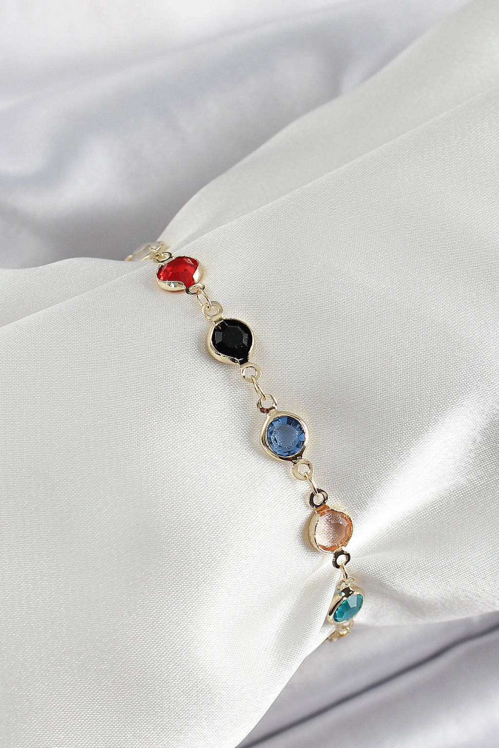 Pirinç Asorti Model Gold Renk Zirkon Taşlı Kadın Bileklik