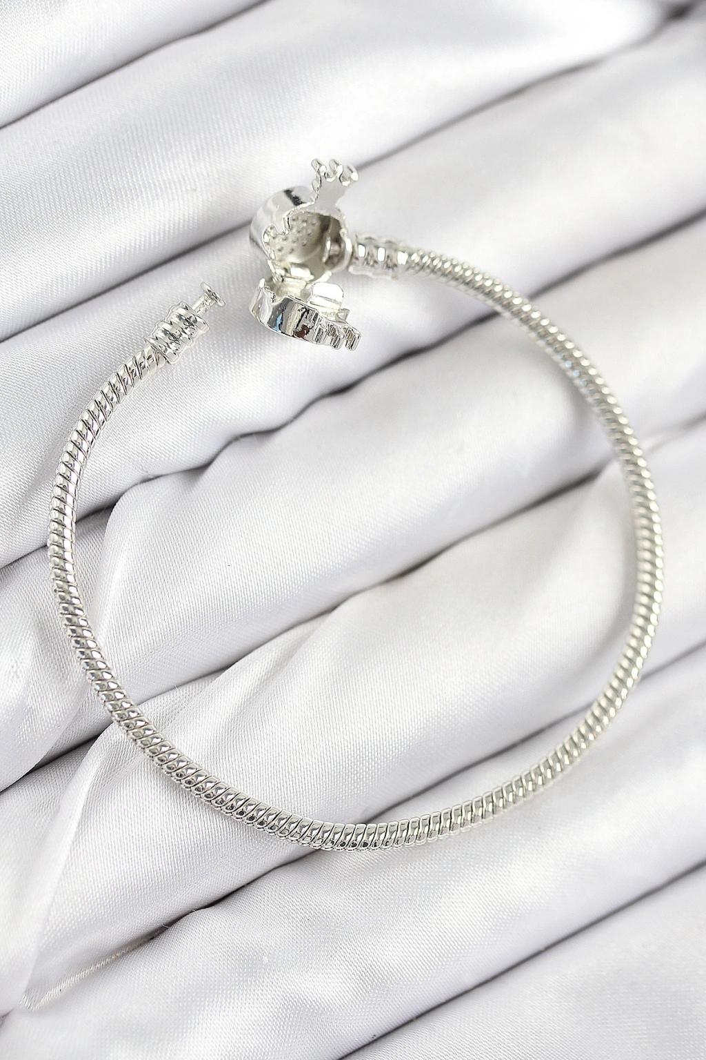 Pirinç Charm Zirkon Taşlı Taç Model Gümüş Renk Kadın Bileklik