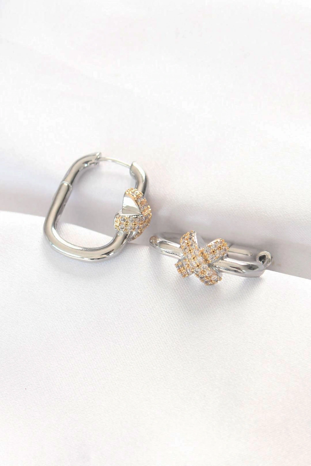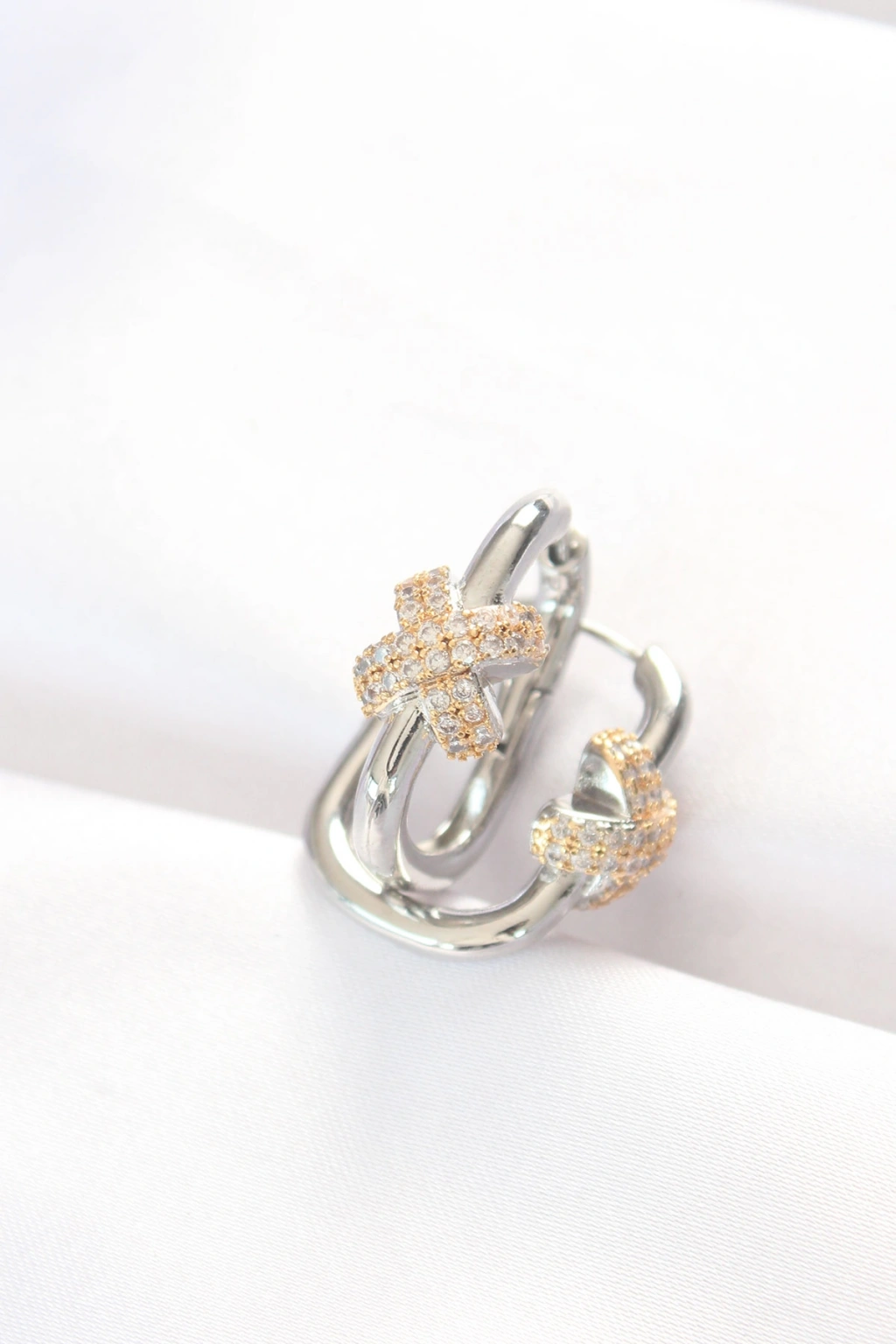 Pirinç Çift Renk Taşlı X Tasarımlı Dikdörtgen Küpe