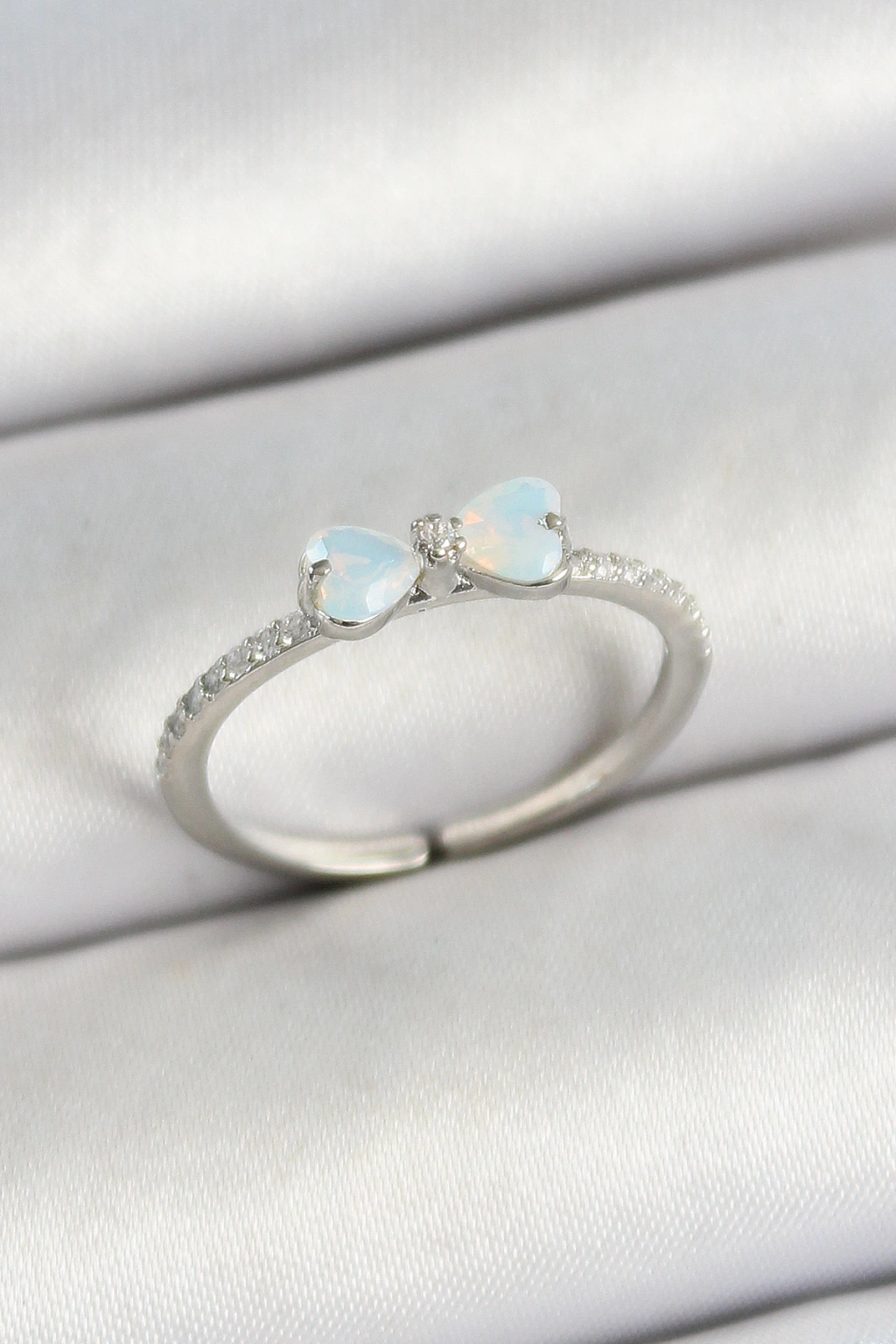 Pirinç Fiyonk Figürlü Zirkon Taşlı Gümüş Renk Ayarlanabilir Kadın Yüzük
