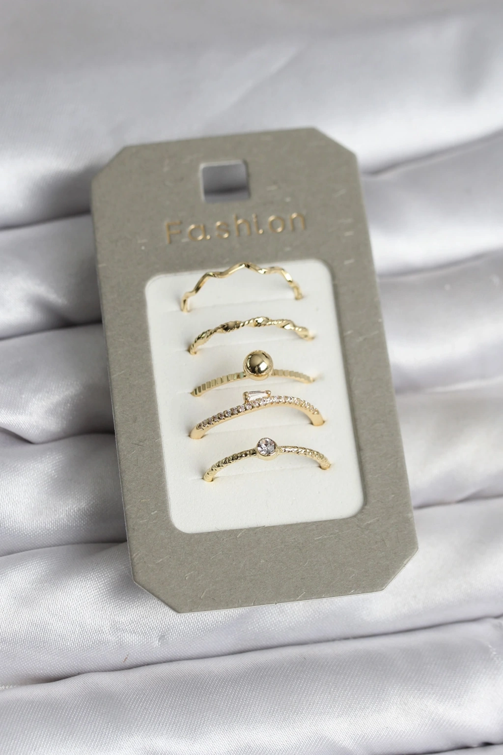 Pirinç Gold Renk 5'li Yüzük Seti