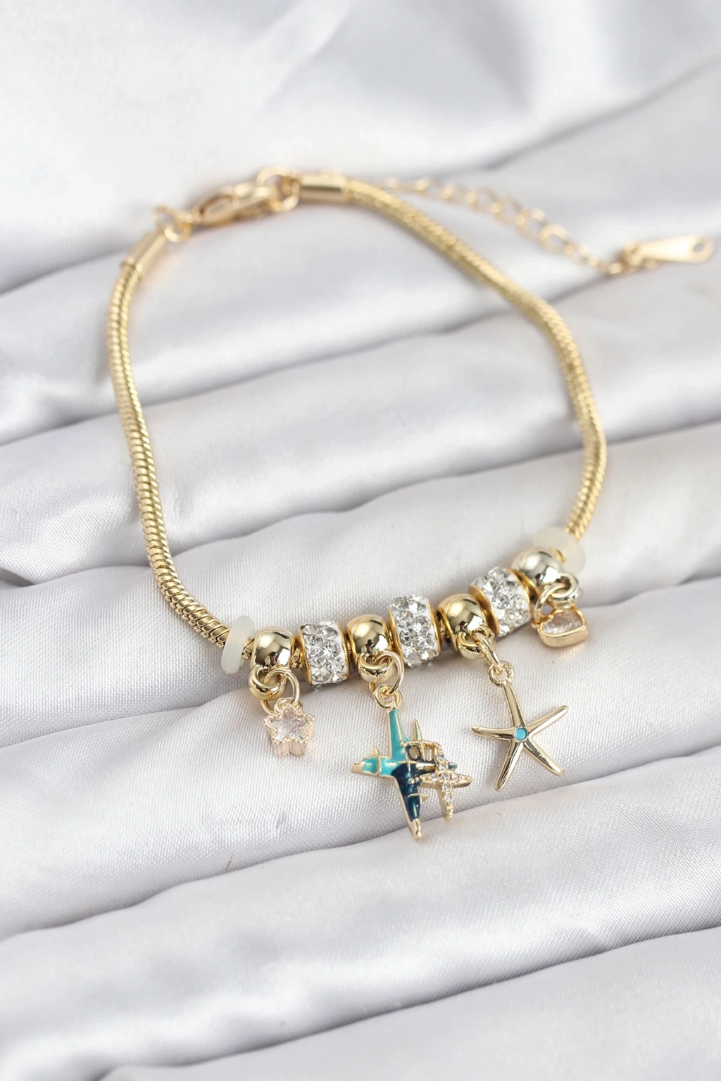 Pirinç Gold Renk Yıldız Model Charmlı Kadın Bileklik