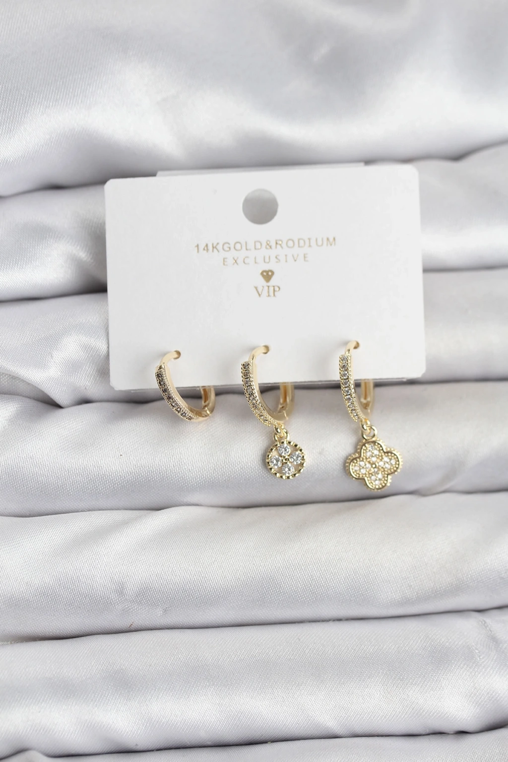 Pirinç Gold Renk Yonca Model 3'lü Kadın Küpe Seti