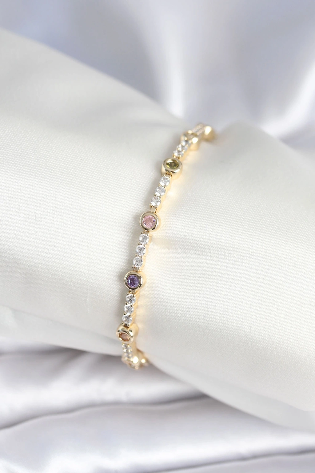 Pirinç Gold Renk Zirkon Taşlı Kadın Bileklik