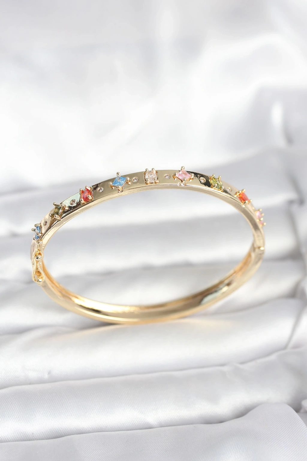 Pirinç Gold Renk Zirkon Taşlı Kelepçe Bileklik