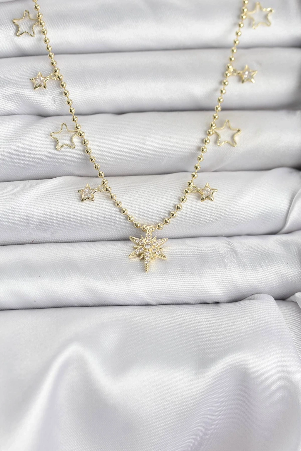 Pirinç Gold Renk Zirkon Taşlı Kutup Yıldızı Model Kadın Kolye