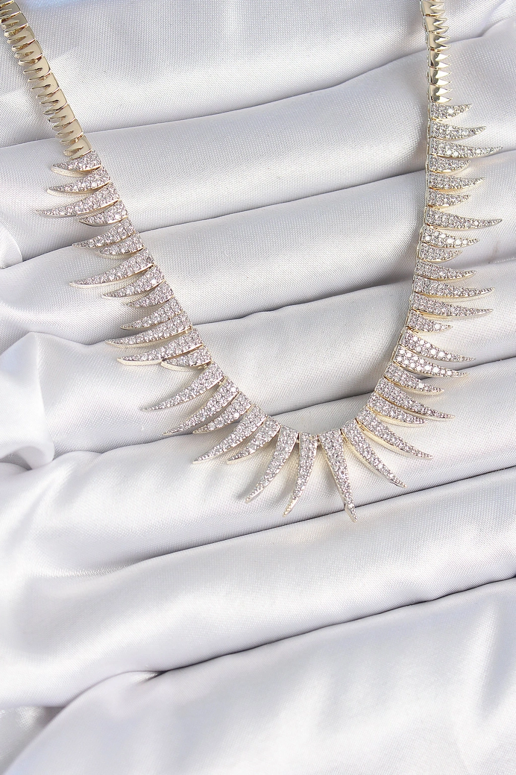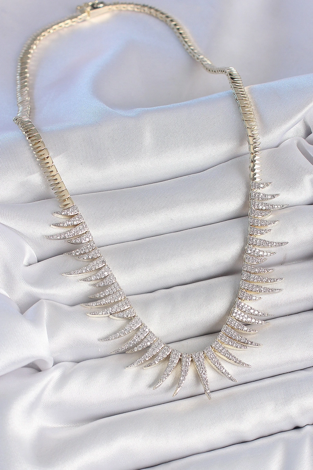 Pirinç Gold Renk Zirkon Taşlı Sivri Model VIP Seri Kadın Kolye