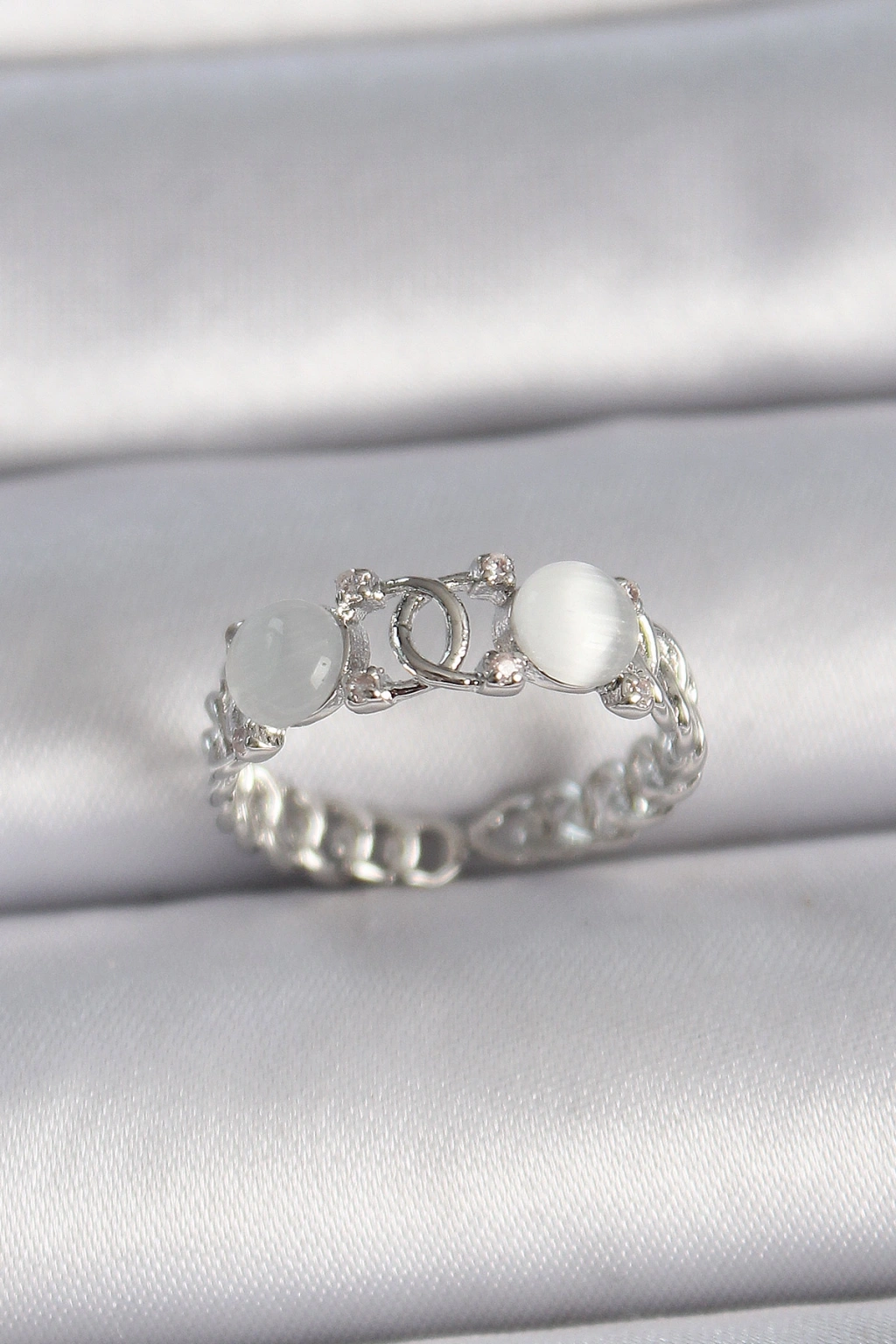 Pirinç Gümüş Renk Ayarlanabilir Zirkon Taşlı Beyaz Mineli Birleşik Halka Model Kadın Yüzük