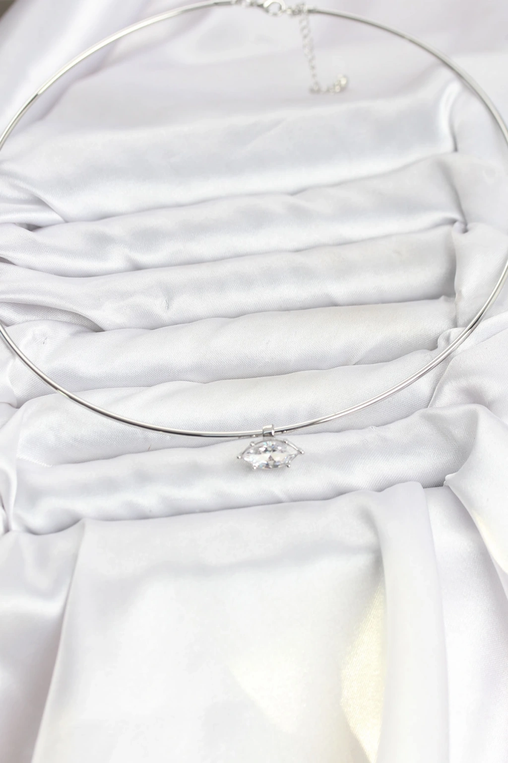 Pirinç Gümüş Renk Choker Model Zirkon Taşlı Kadın Kolye