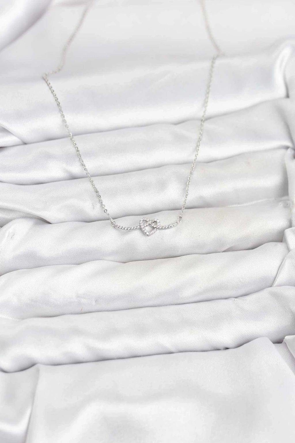 Pirinç Gümüş Renk Düğüm Kalp Model Kadın Kolye