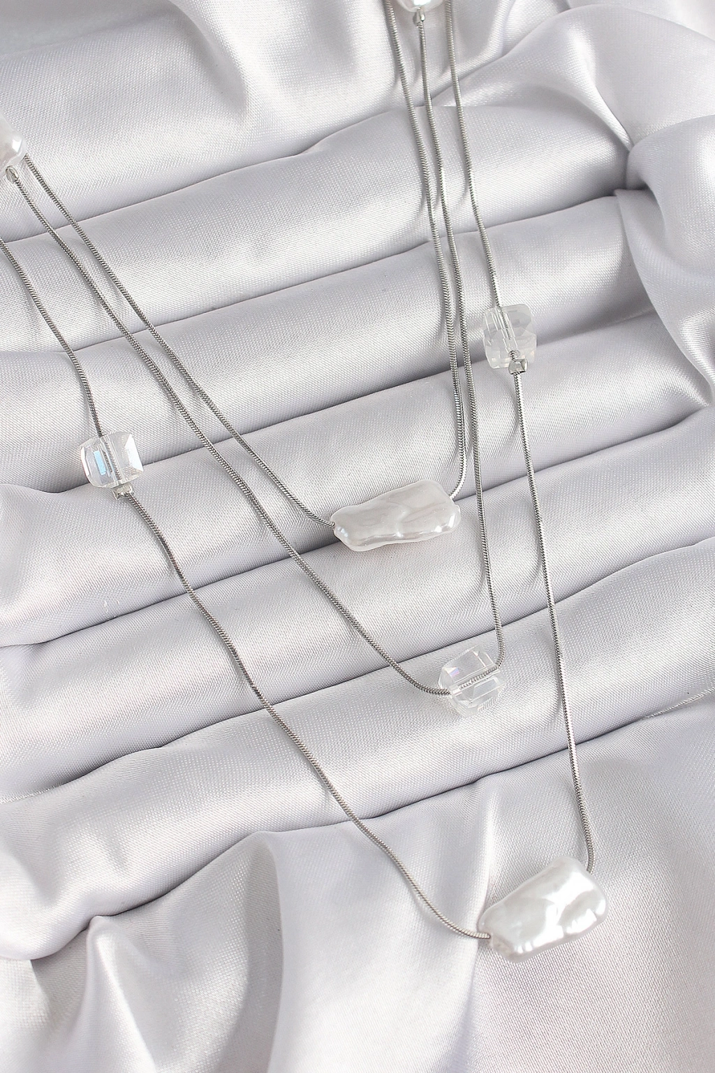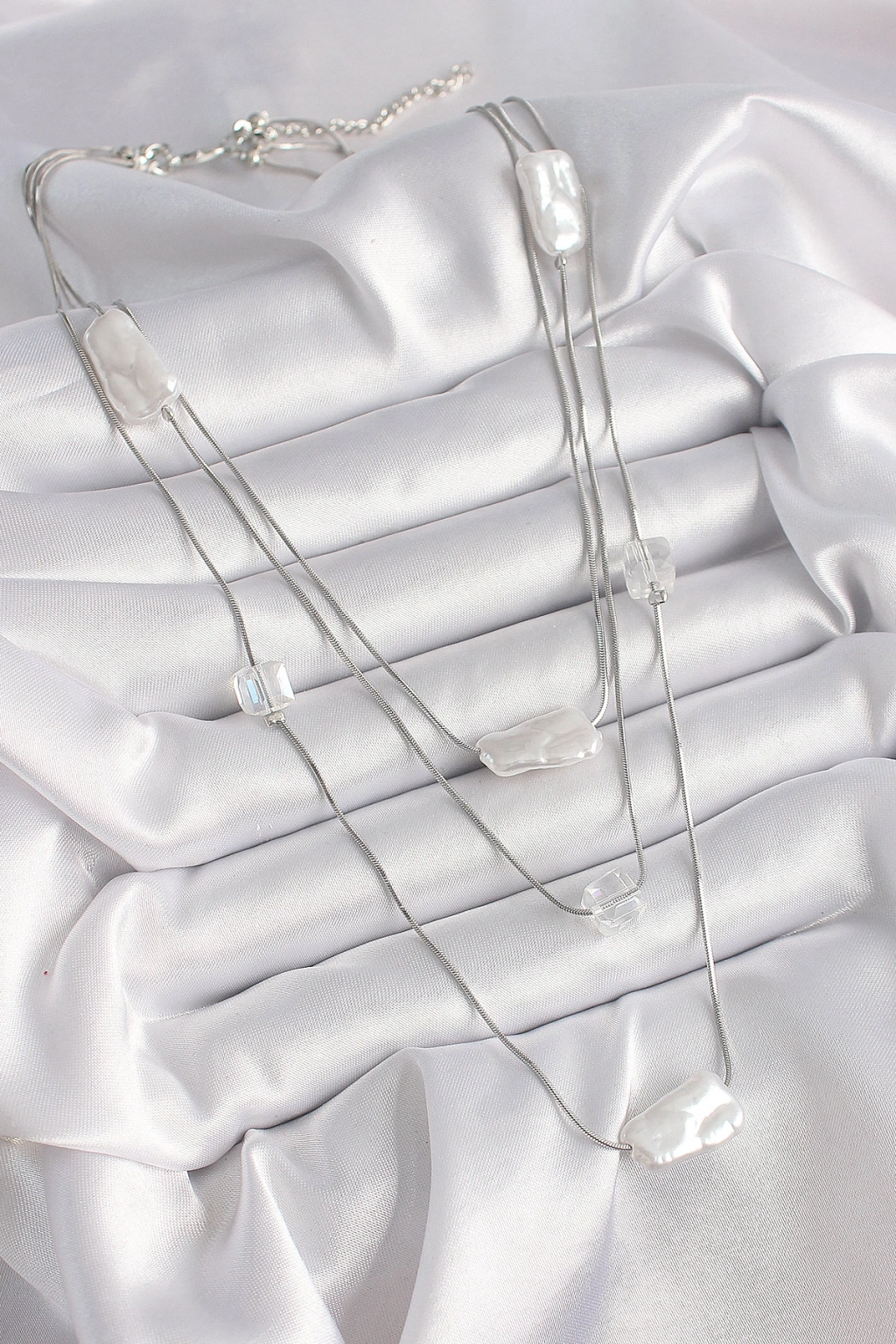 Pirinç Gümüş Renk Ezme İnci Model Çoklu Kadın Kolye