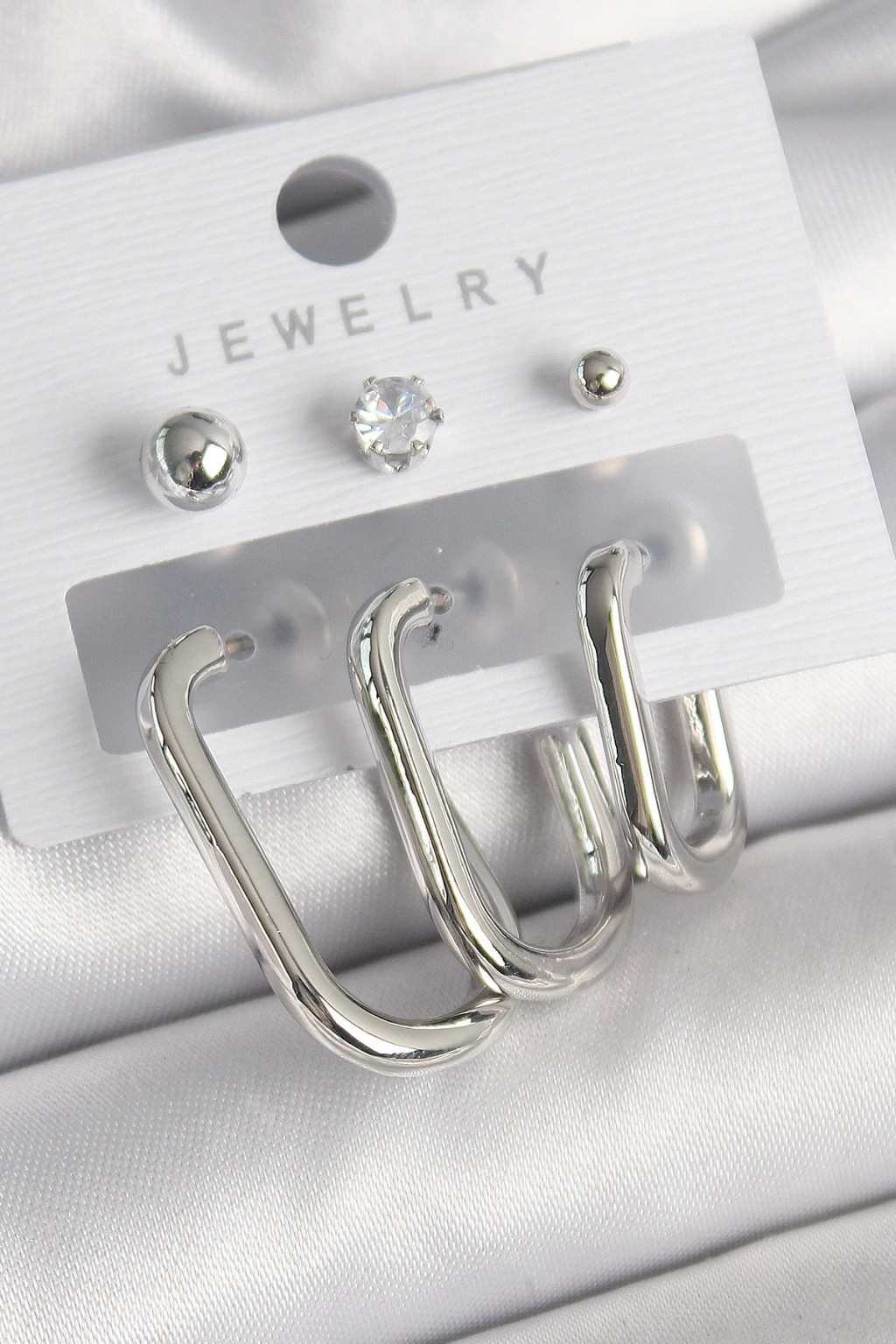 Pirinç Gümüş Renk Halka Model Zirkon Taşlı Topçuk Detay Kadın Küpe Seti