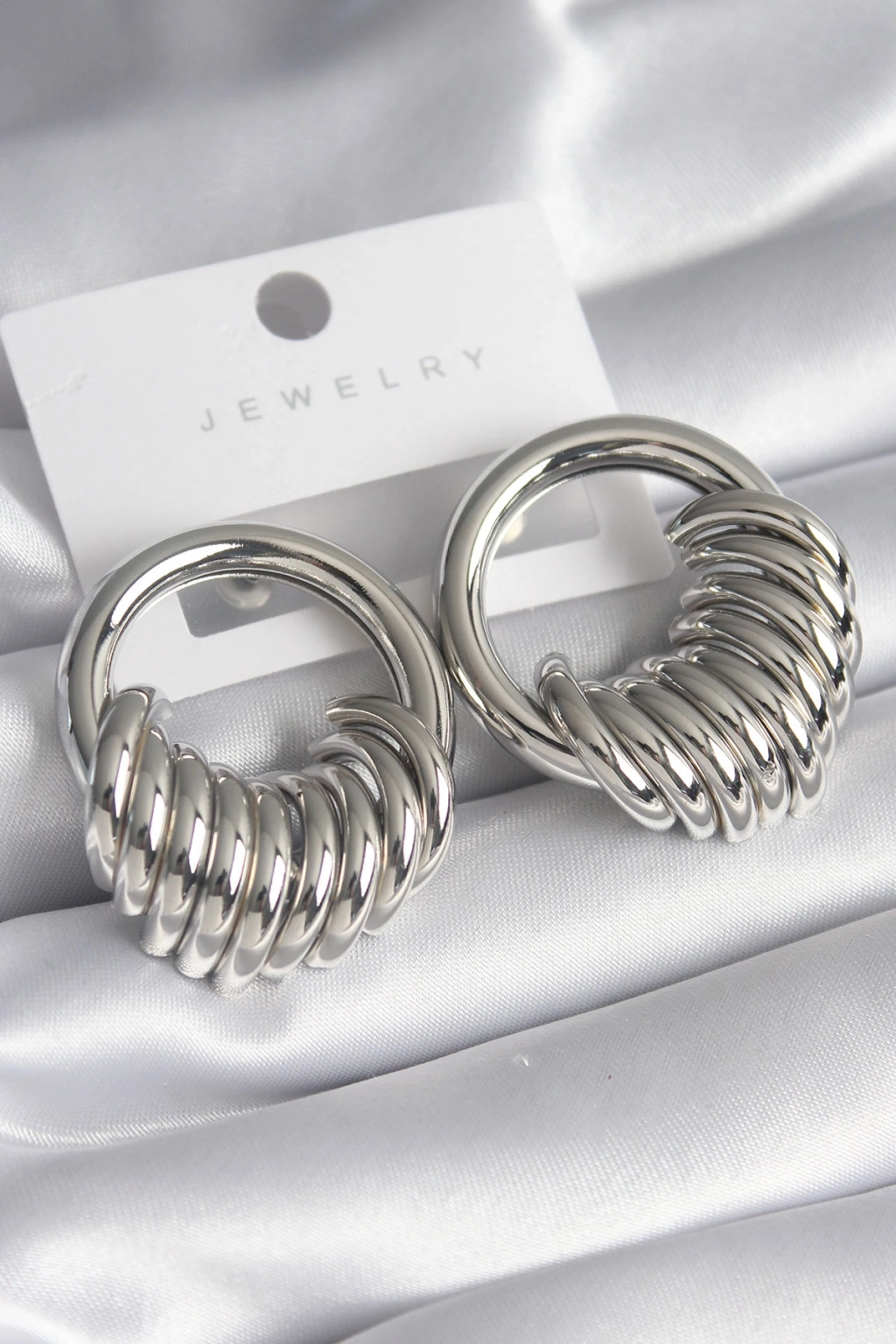 Pirinç Gümüş Renk Halka Sarmal Model Kadın Küpe
