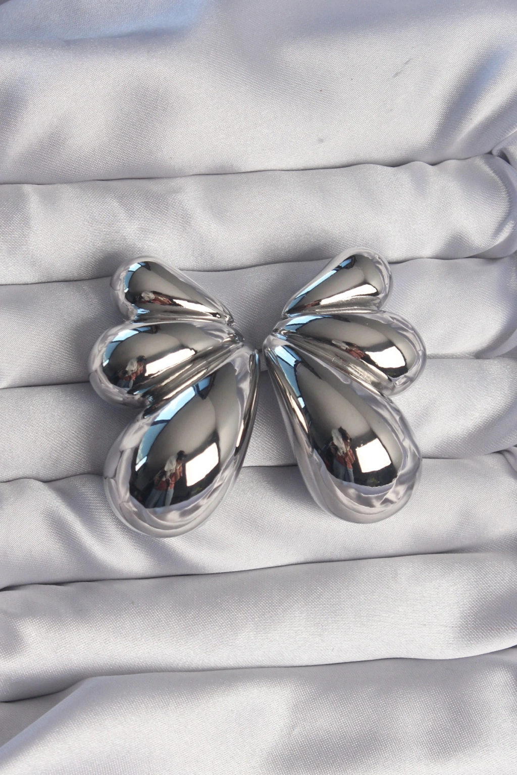 Pirinç Gümüş Renk İri Bombeli Kelebek Küpe