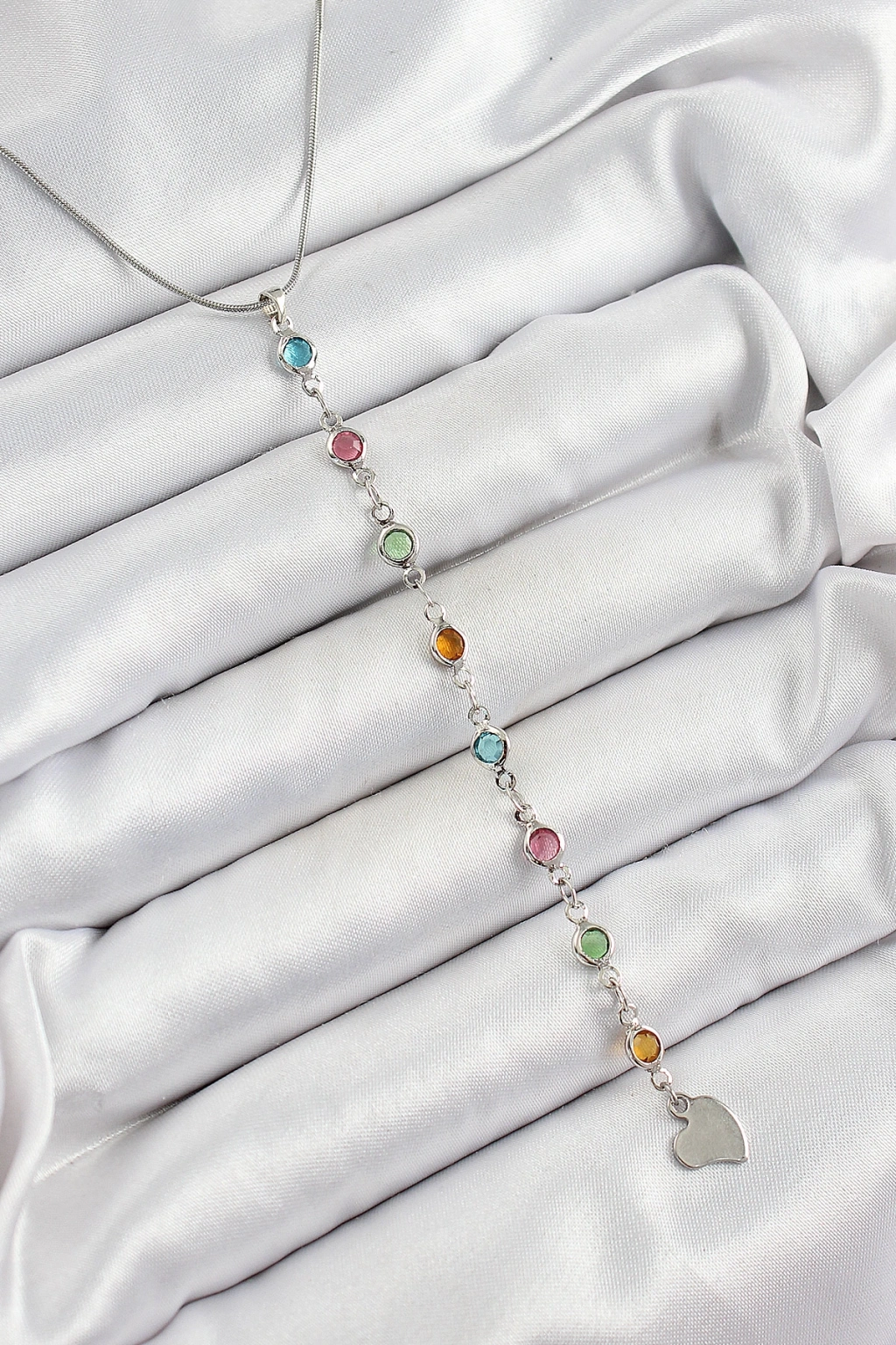 Pirinç Gümüş Renk Karışık Renk Zirkon Taşlı Y Kadın Kolye
