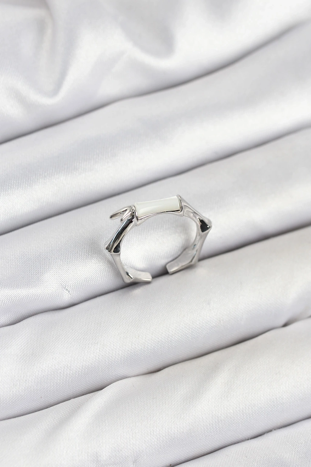 Pirinç Gümüş Renk Kemik Model Kadın Yüzük