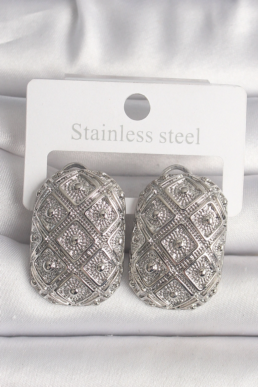 Pirinç Gümüş Renk Motif İşlemeli Kadın Küpe