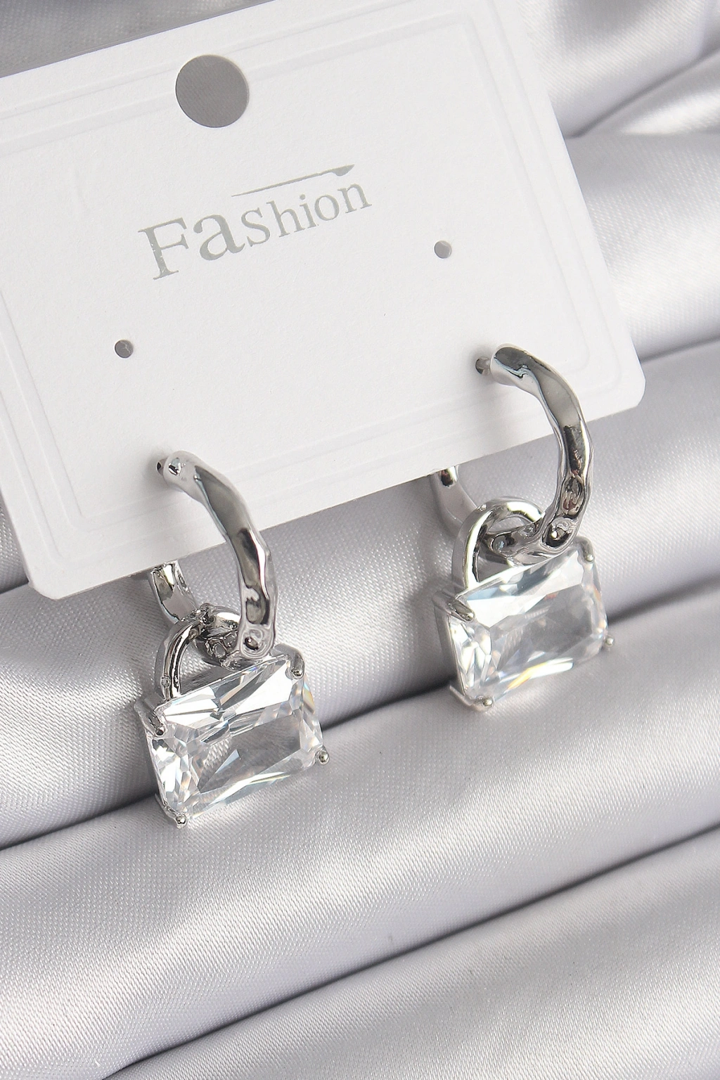 Pirinç Gümüş Renk Sallantı Zirkon Taşlı Çanta Model Kadın Küpe