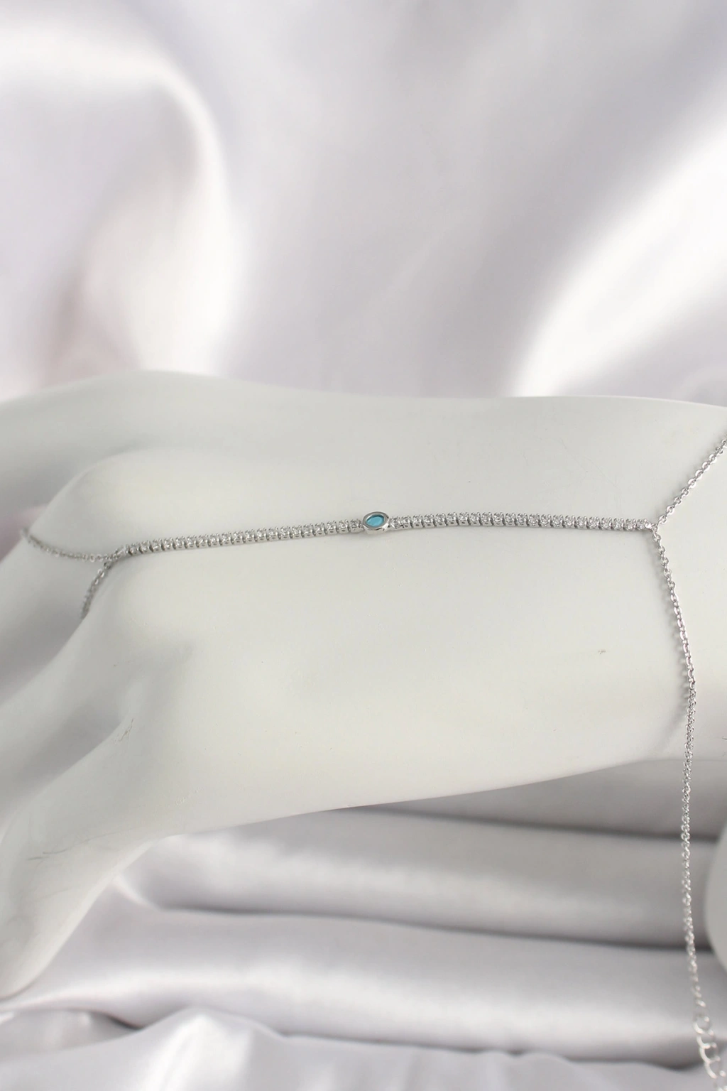 Pirinç Gümüş Renk Su Yolu Zirkon Taşlı Mavi Taş Detaylı Kadın Şahmeran