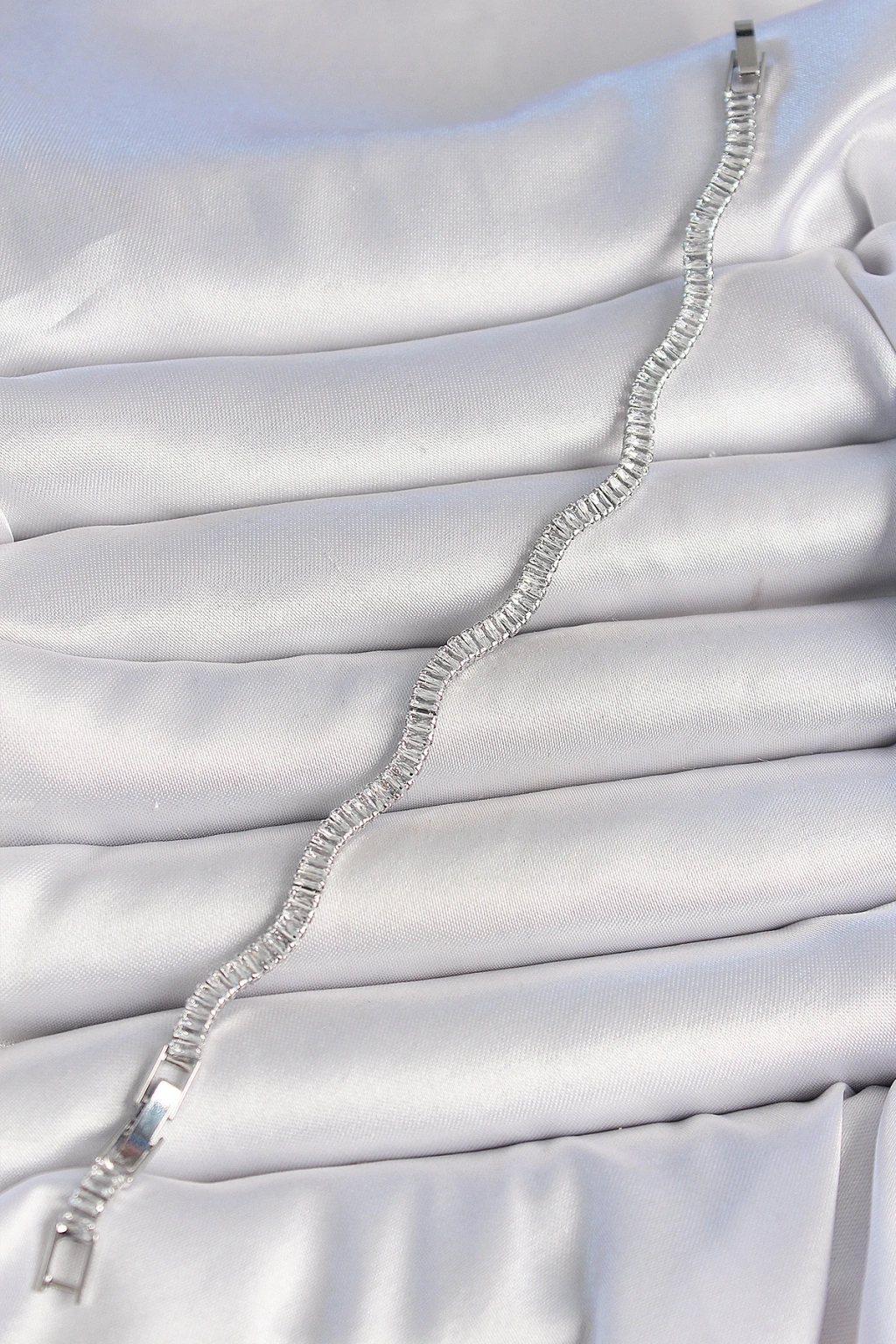 Pirinç Gümüş Renk Su Yolu Zirkon Taşlı Model Kadın Bileklik