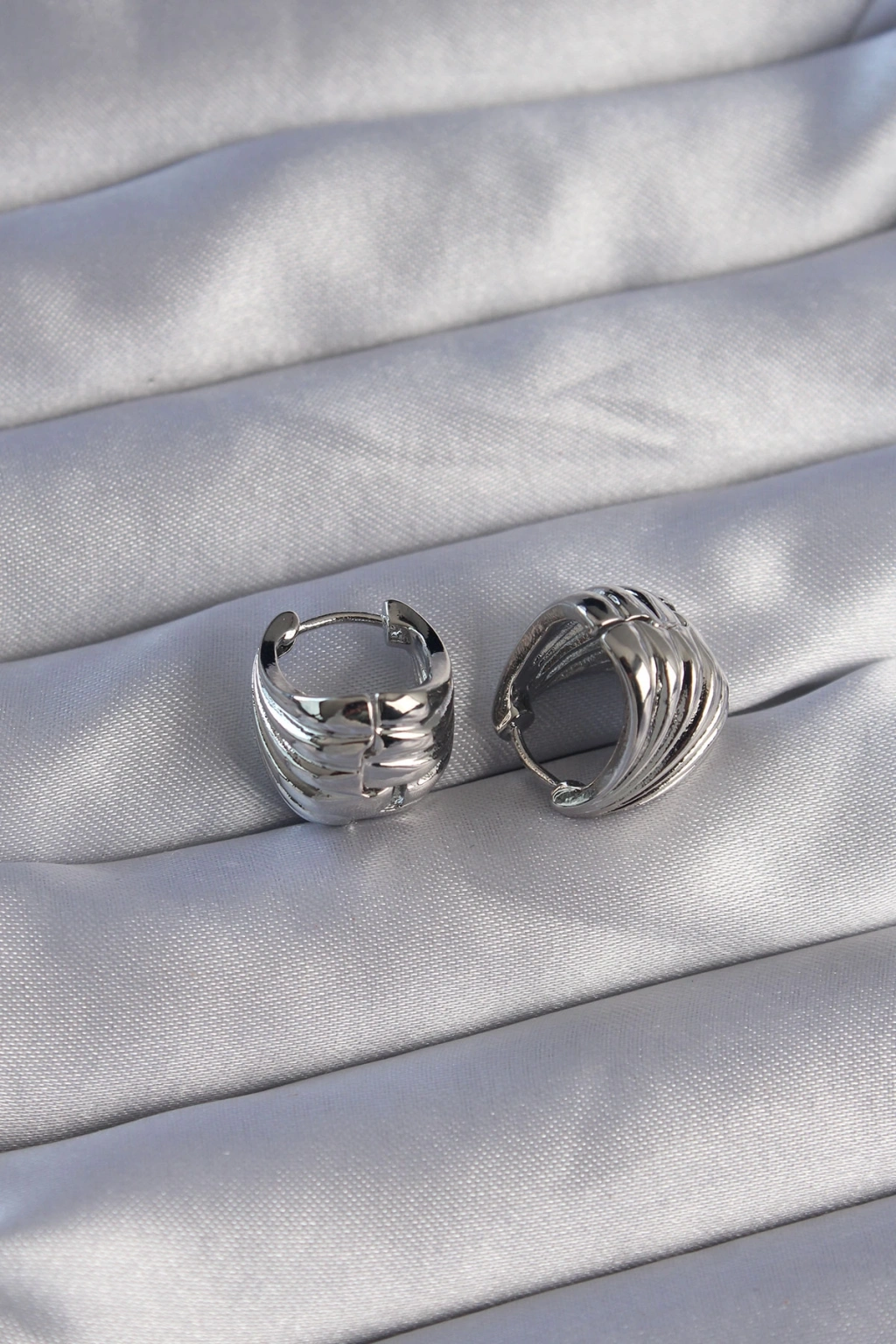 Pirinç Gümüş Renk Tırtıklı Minimal Bombeli Tasarım Küpe