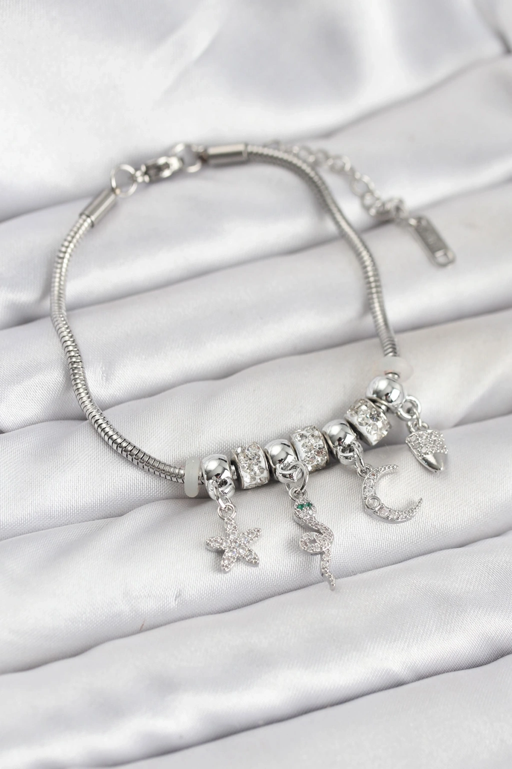 Pirinç Gümüş Renk Yılan Charmlı Kadın Bileklik