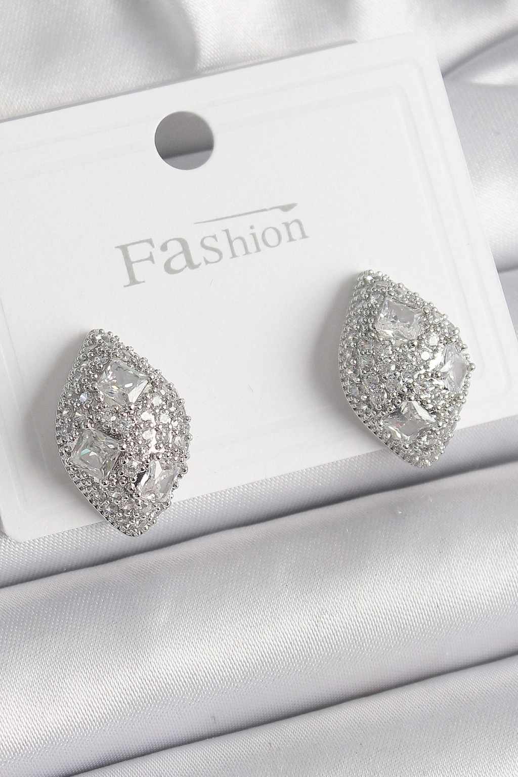 Pirinç Gümüş Renk Zirkon Taş İşlemeli Damla Model Kadın Küpe