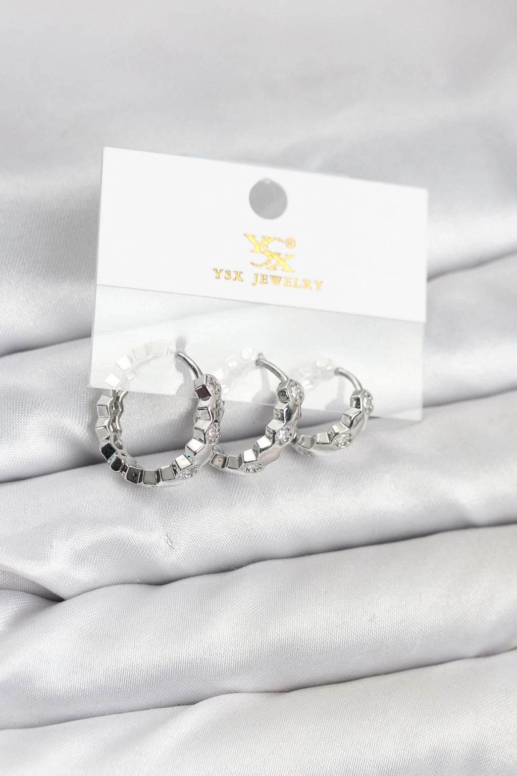 Pirinç Gümüş Renk Zirkon Taşlı Petek Halka Model YSX Trio Küpe Seti