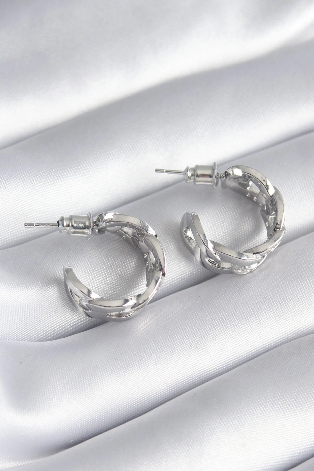 Pirinç Gümüş Renk Zirkon Taşlı Zincir Model Kadın Küpe