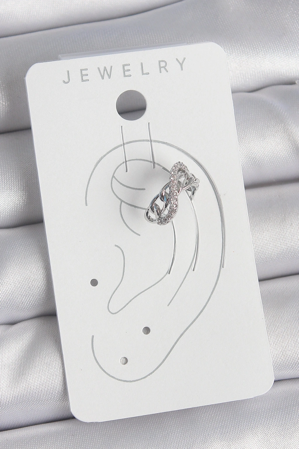 Pirinç Gümüş Renk Zirkon Taşlı Zincir Sonsuzluk Model Kadın Kıkırdak Küpe