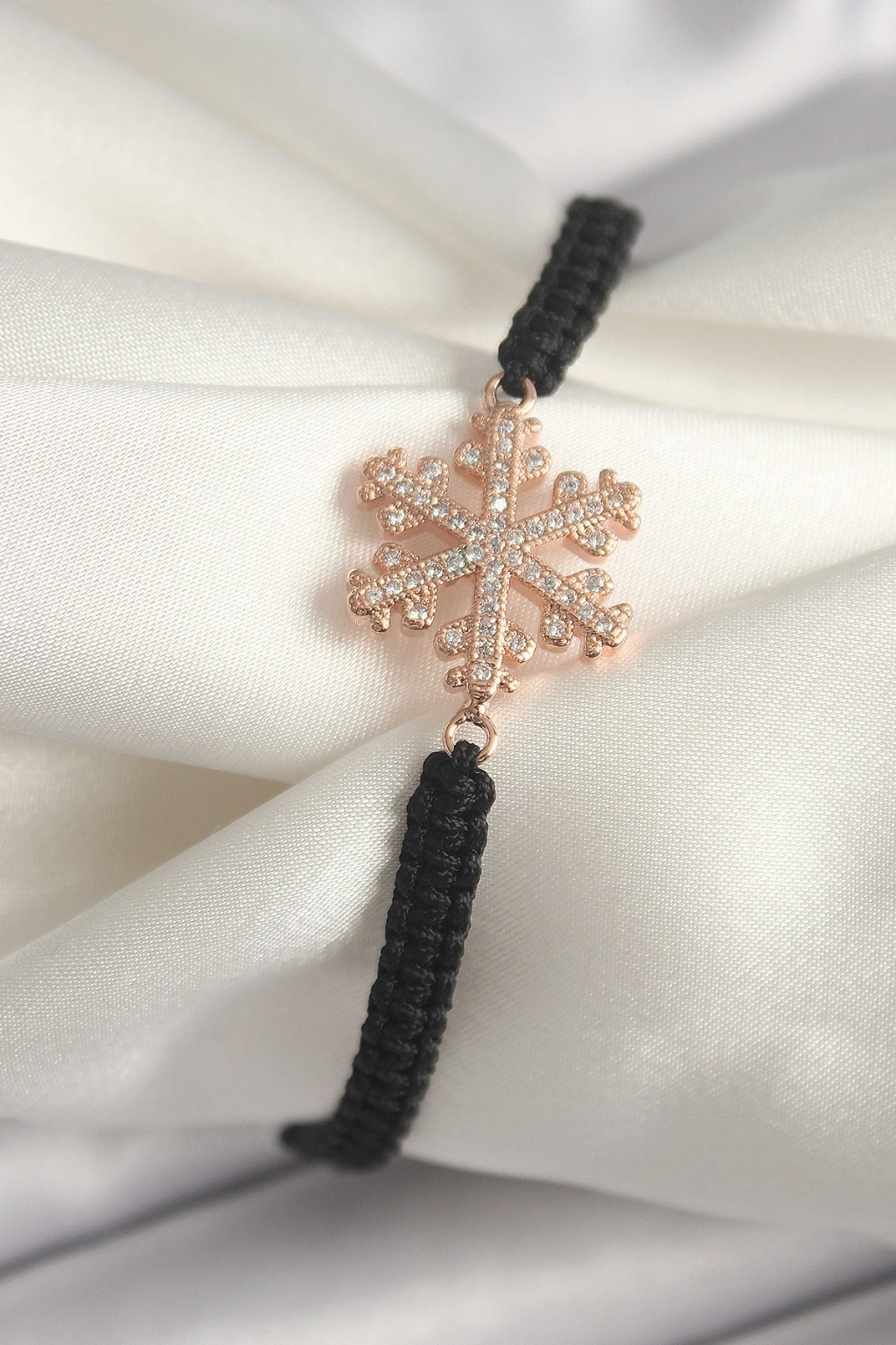 Pirinç Rose Renk Zirkon Taşlı Kar Tanesi Figür Makrome Asansörlü Model Kadın Bileklik