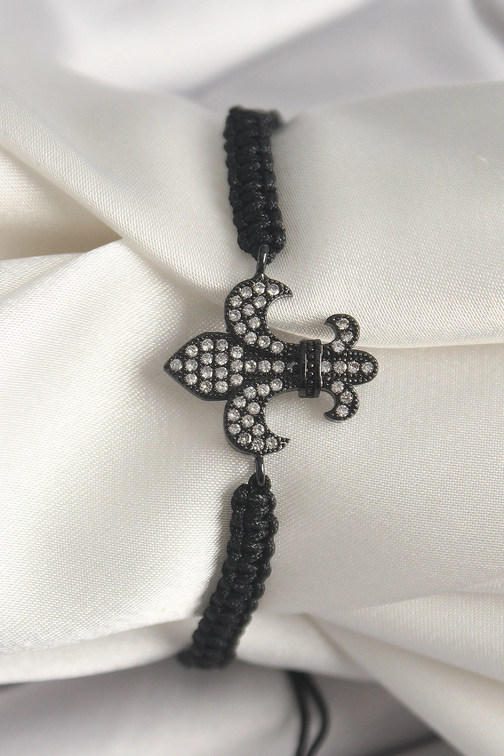 Pirinç Siyah Renk Zirkon Taşlı Zambak Figür Asansörlü Makrome Model Kadın Bileklik