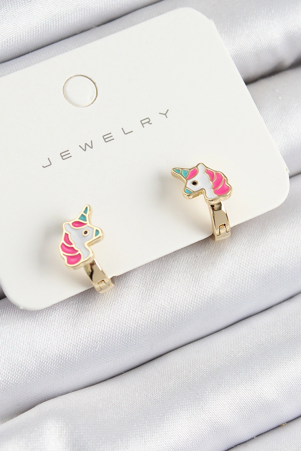 Pirinç Unıcorn Model Gold Renk Çocuk Küpe