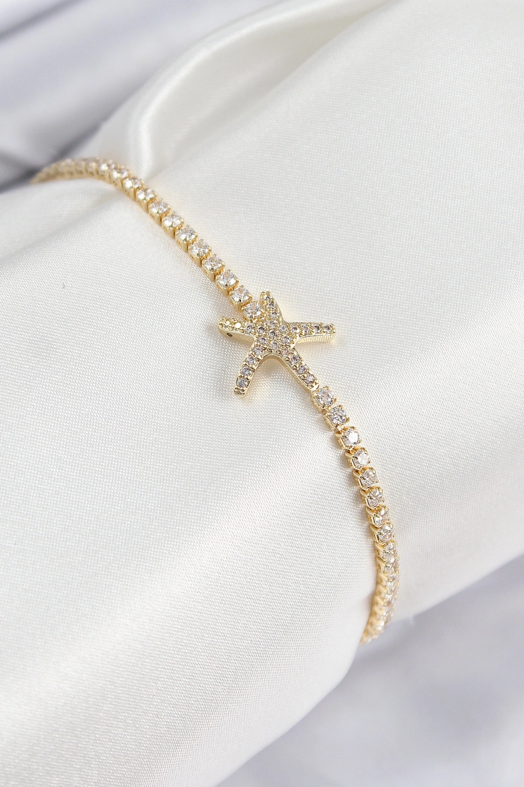 Pirinç Zirkon Taşlı Deniz Yıldızı Model Gold Renk Kadın Bileklik
