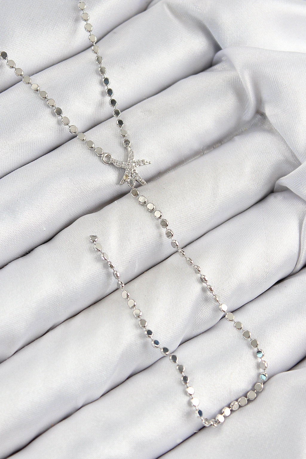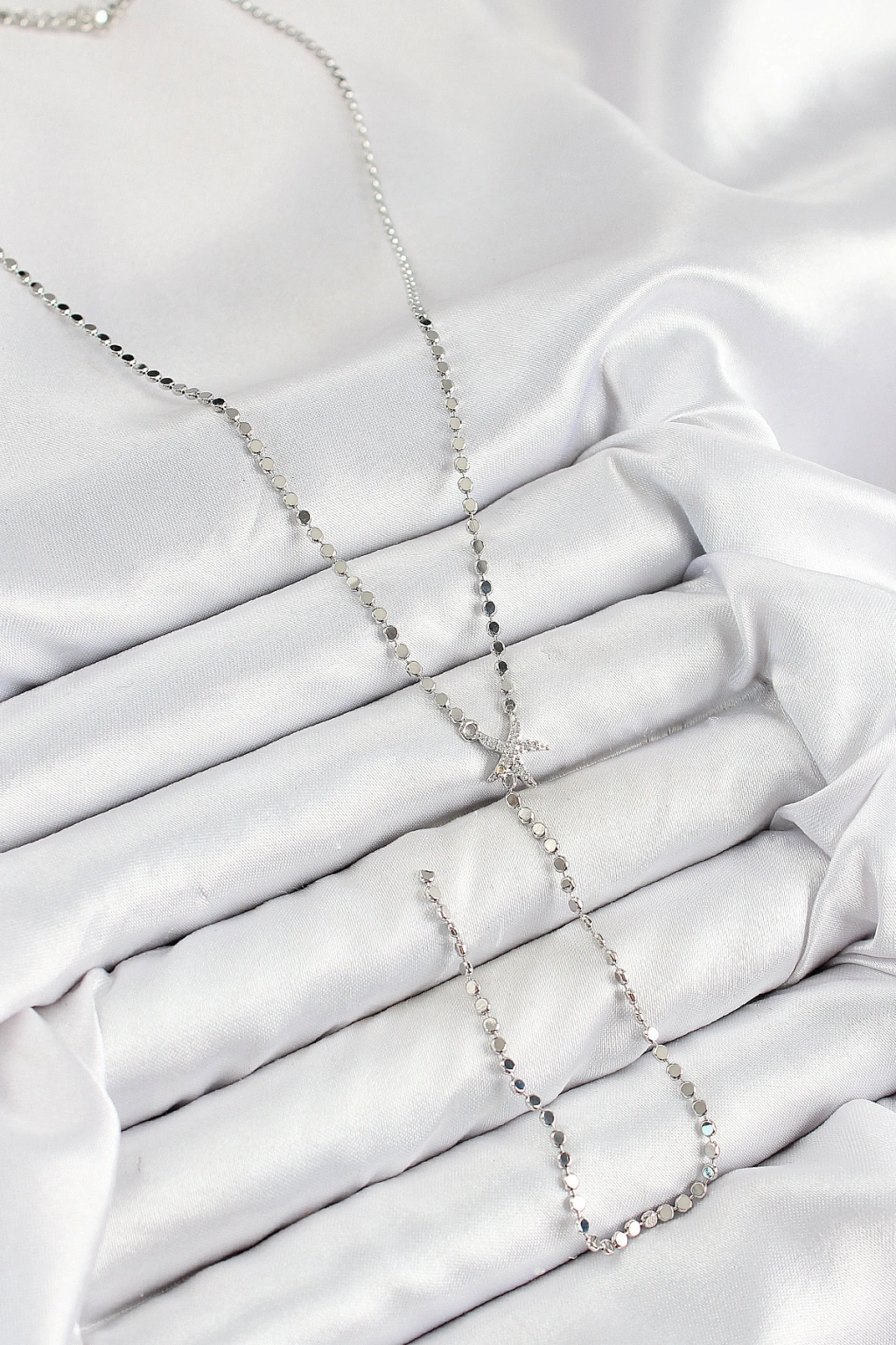 Pirinç Zirkon Taşlı Ezme Zincirli Deniz Yıldızı Model Gümüş Renk Y Kolye