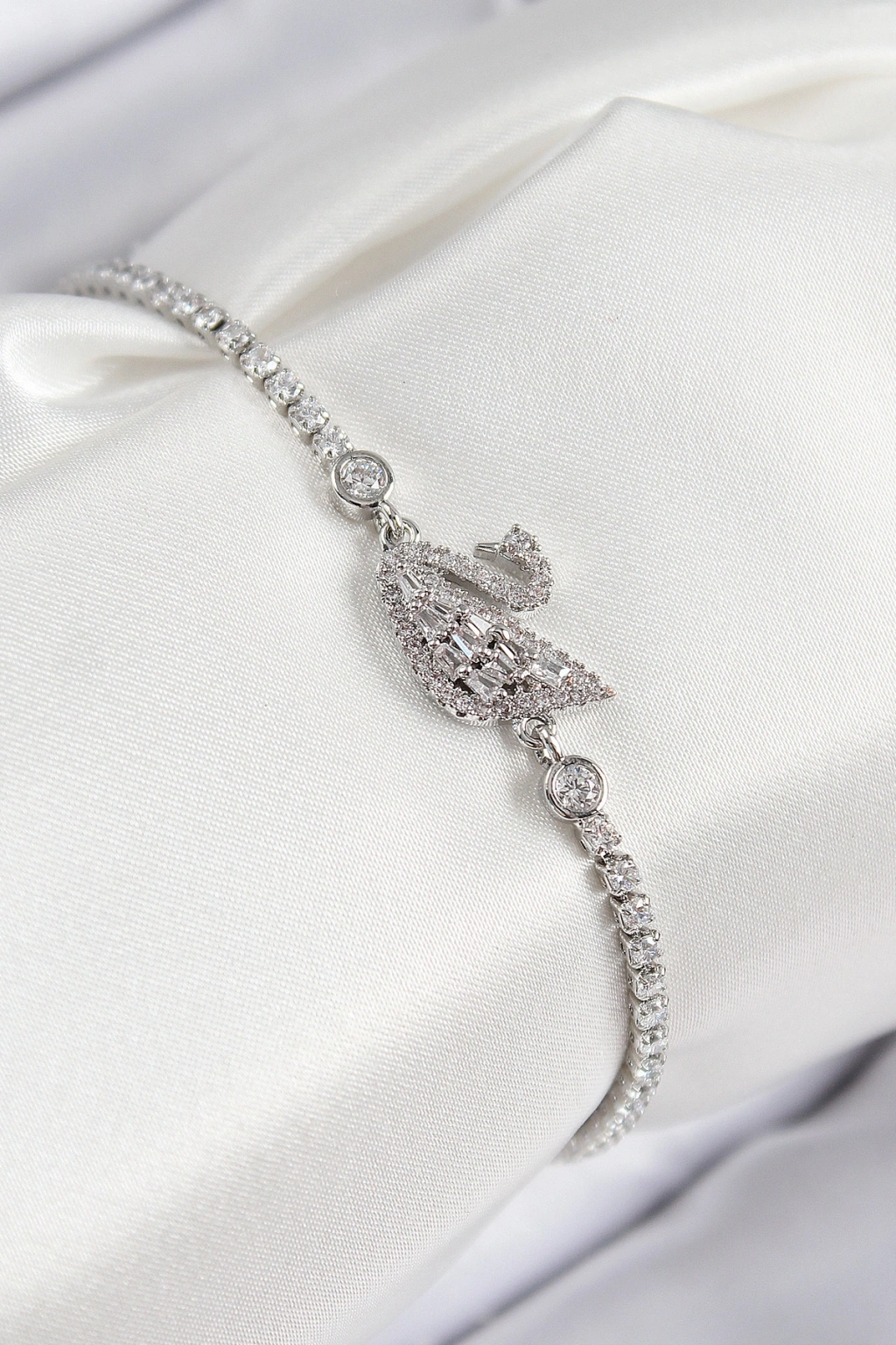 Pirinç Zirkon Taşlı Kuğu Model Gümüş Renk Kadın Bileklik