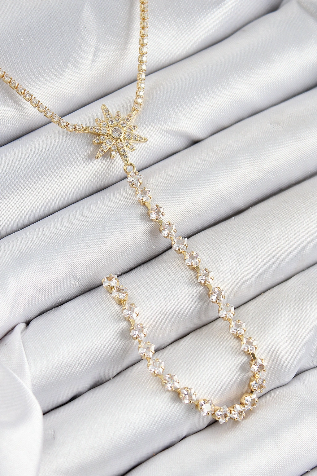 Pirinç Zirkon Taşlı Kutup Yıldızı Model Gümüş Renk Y Kolye