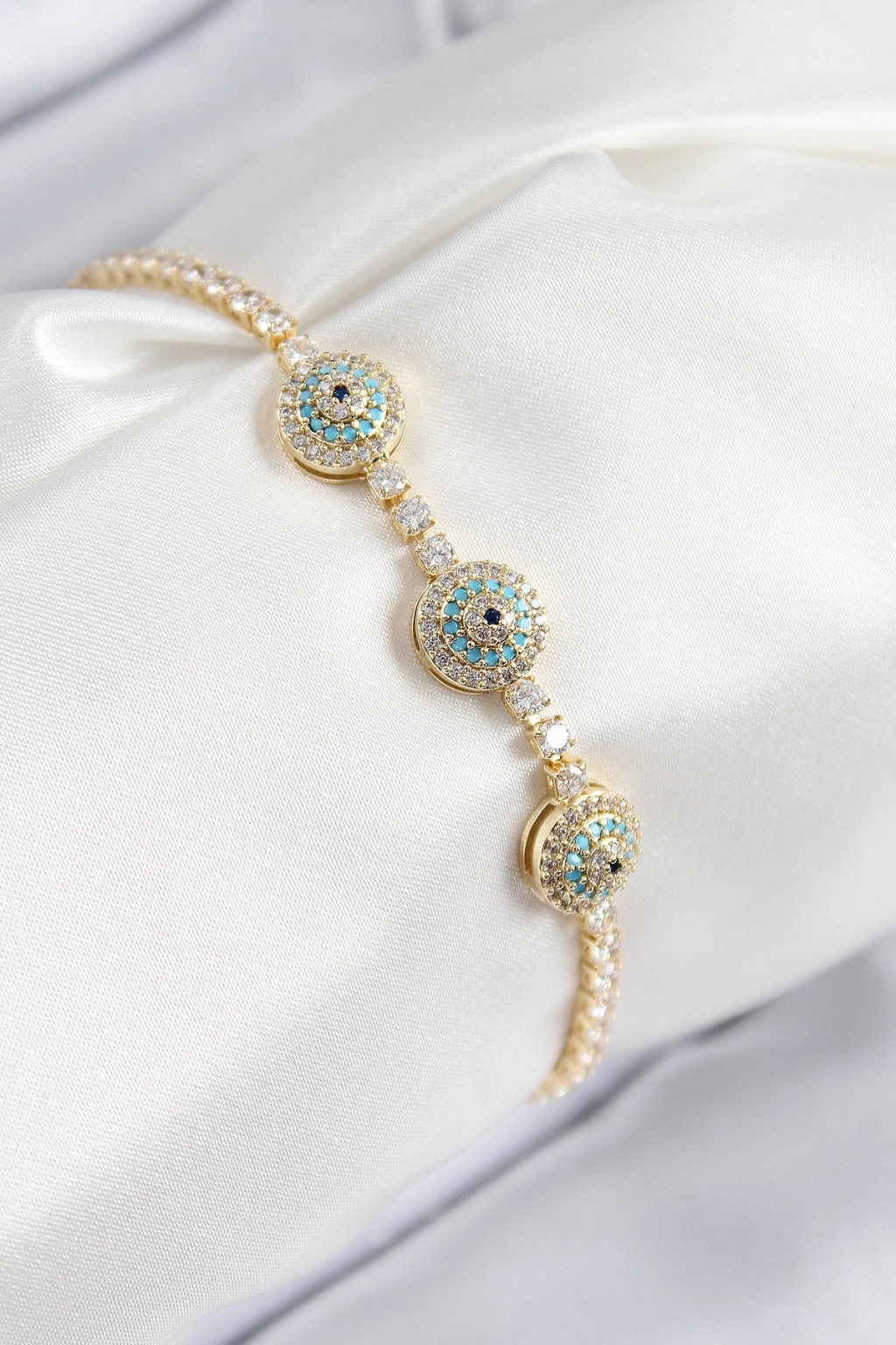 Pirinç Zirkon Taşlı Nazar Model Gold Renk Kadın Bileklik