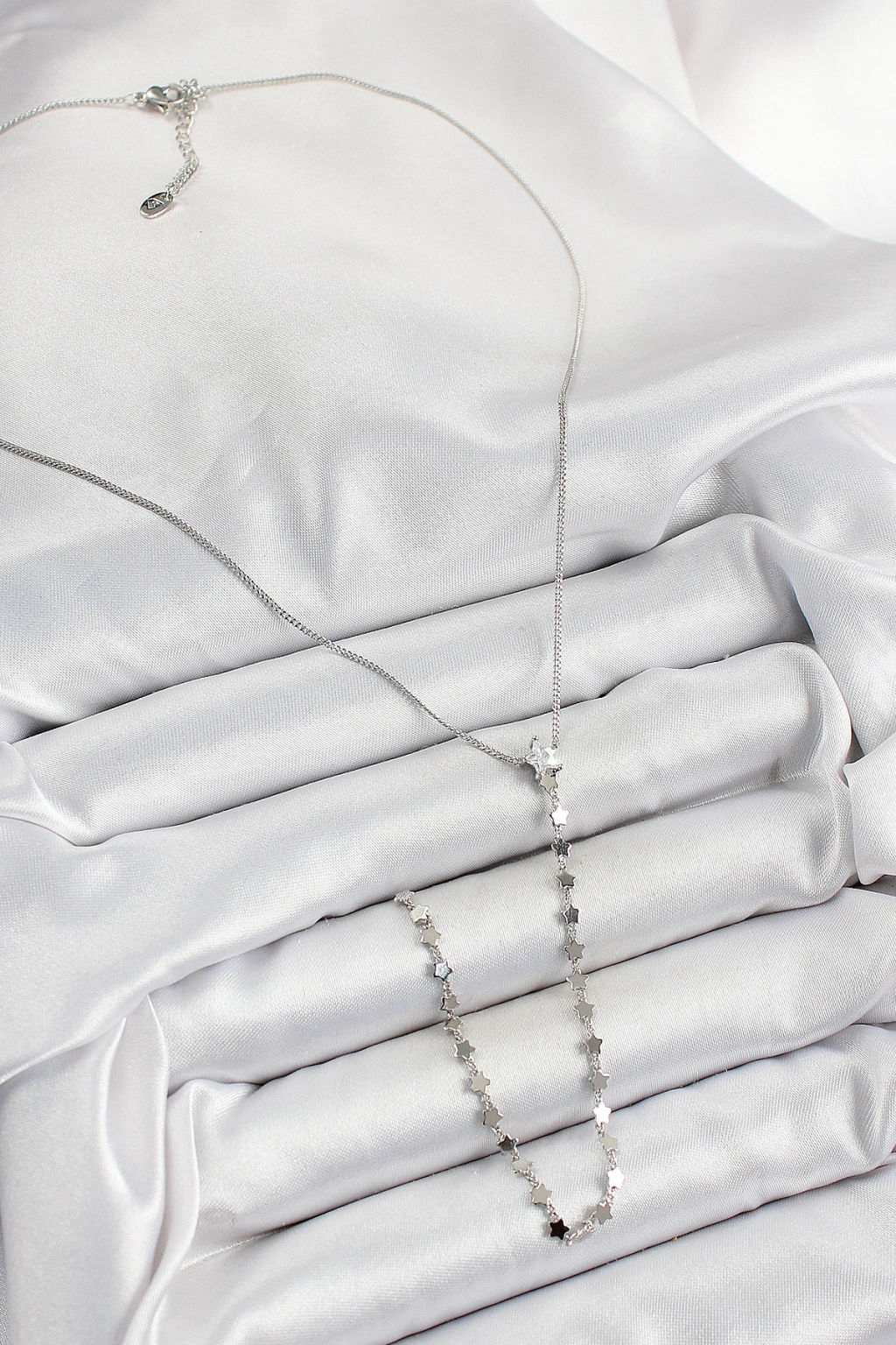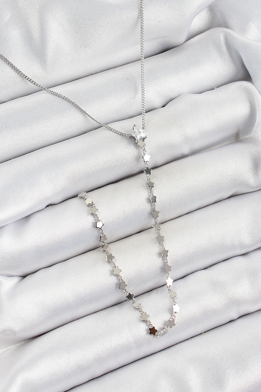 Pirinç Zirkon Taşlı Yıldız Figürlü Y Model Gümüş Renk Kadın Kolye