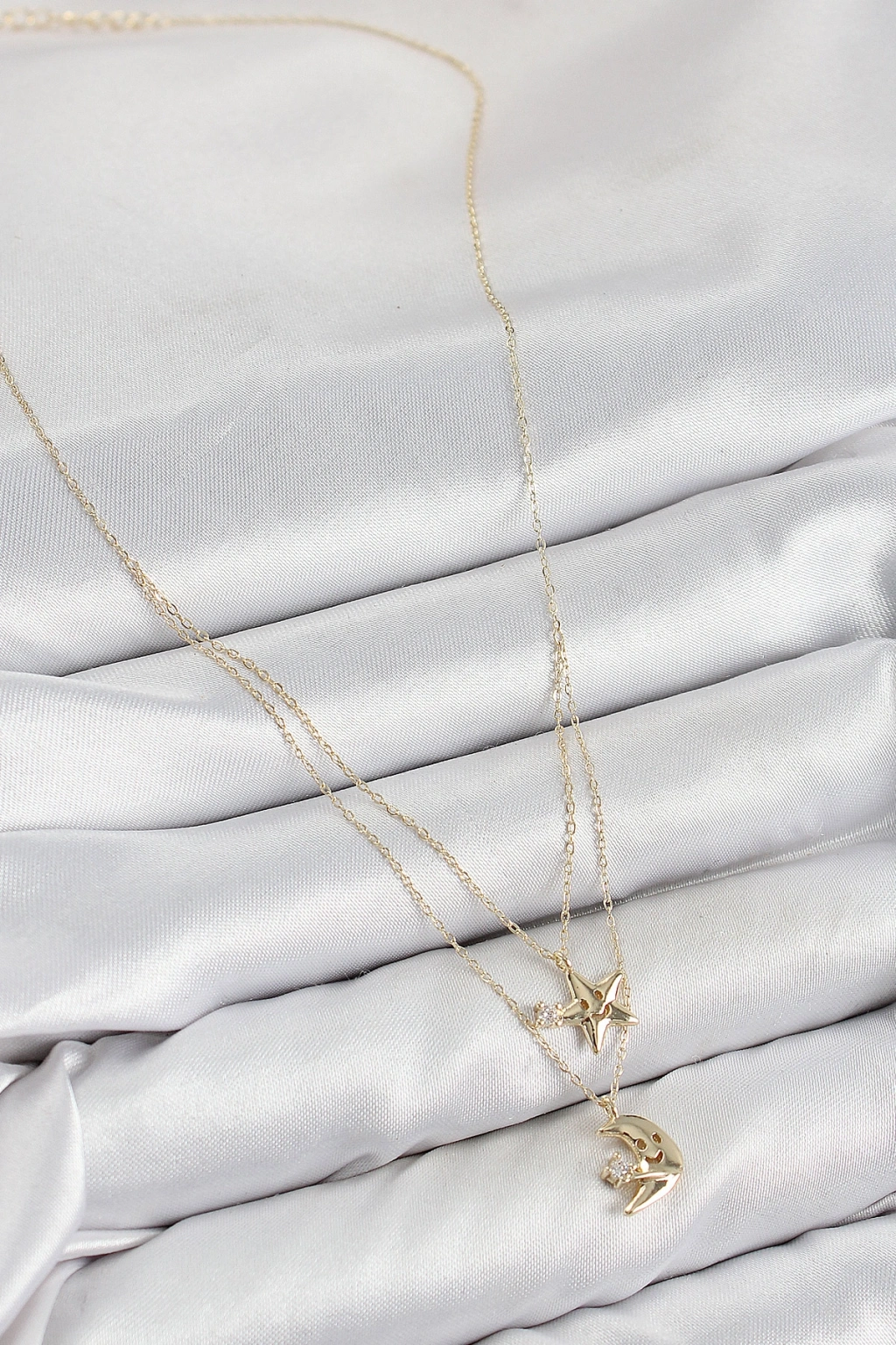 Pirinç Zirkon Taşlı Yıldız Ve Ay Model Gold Renk Kadın Kolye