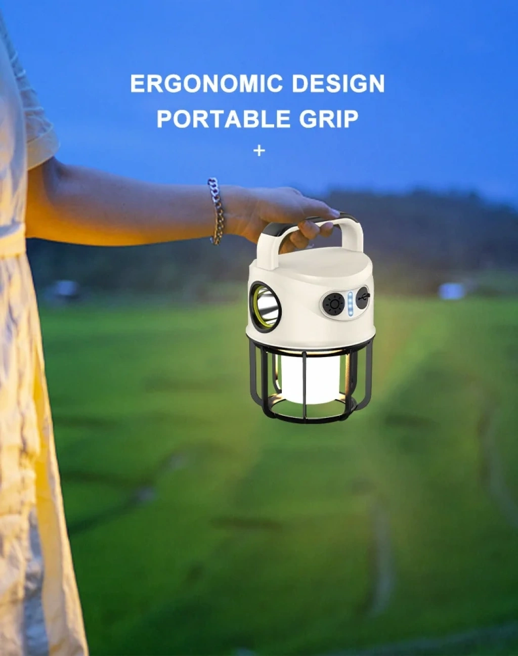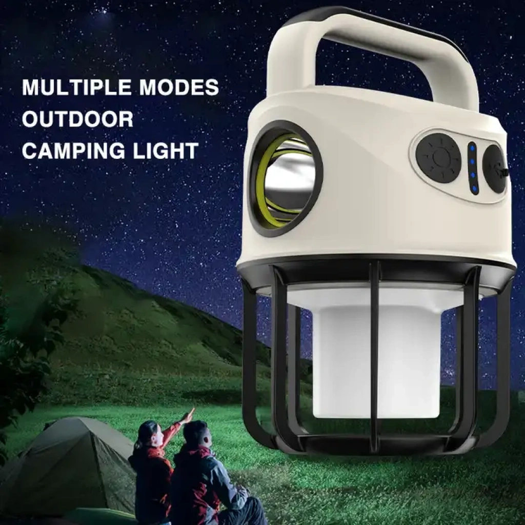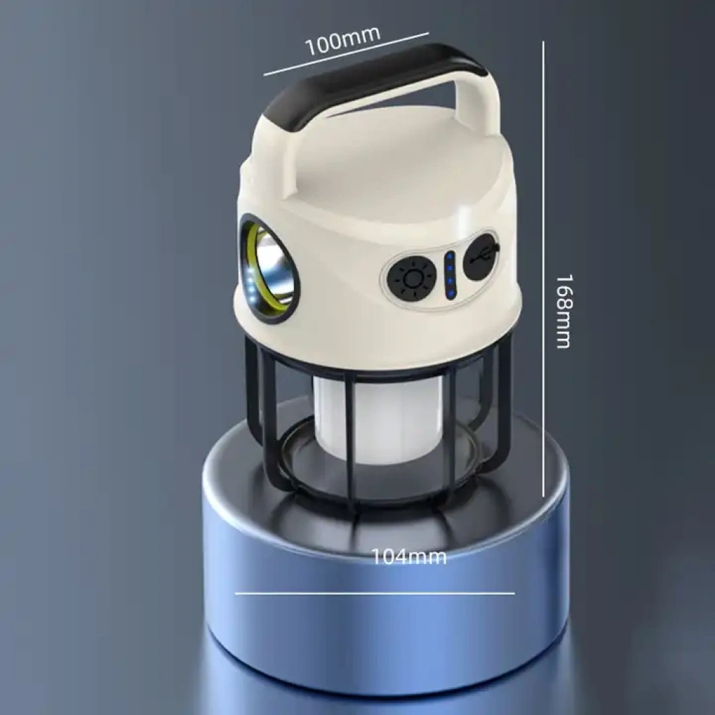 LİTYUM BATARYALI, POWERBANK ÖZELLİKLİ, ŞARJ GÖSTERGELİ, 3 FONKSİYONLU, SARI VE BEYAZ IŞIK YANABİLEN KAMP LAMBASI