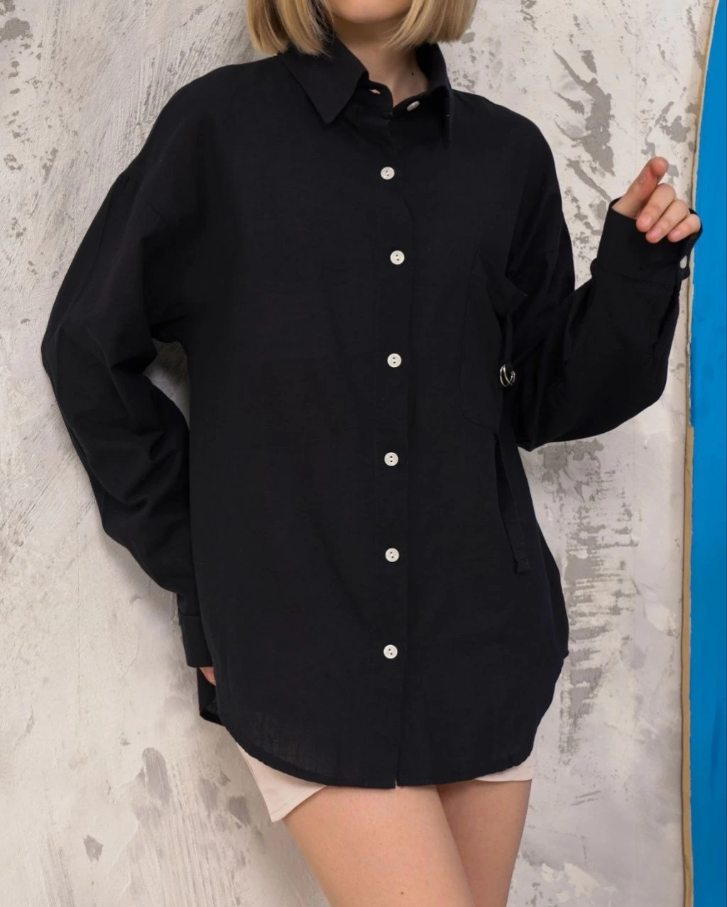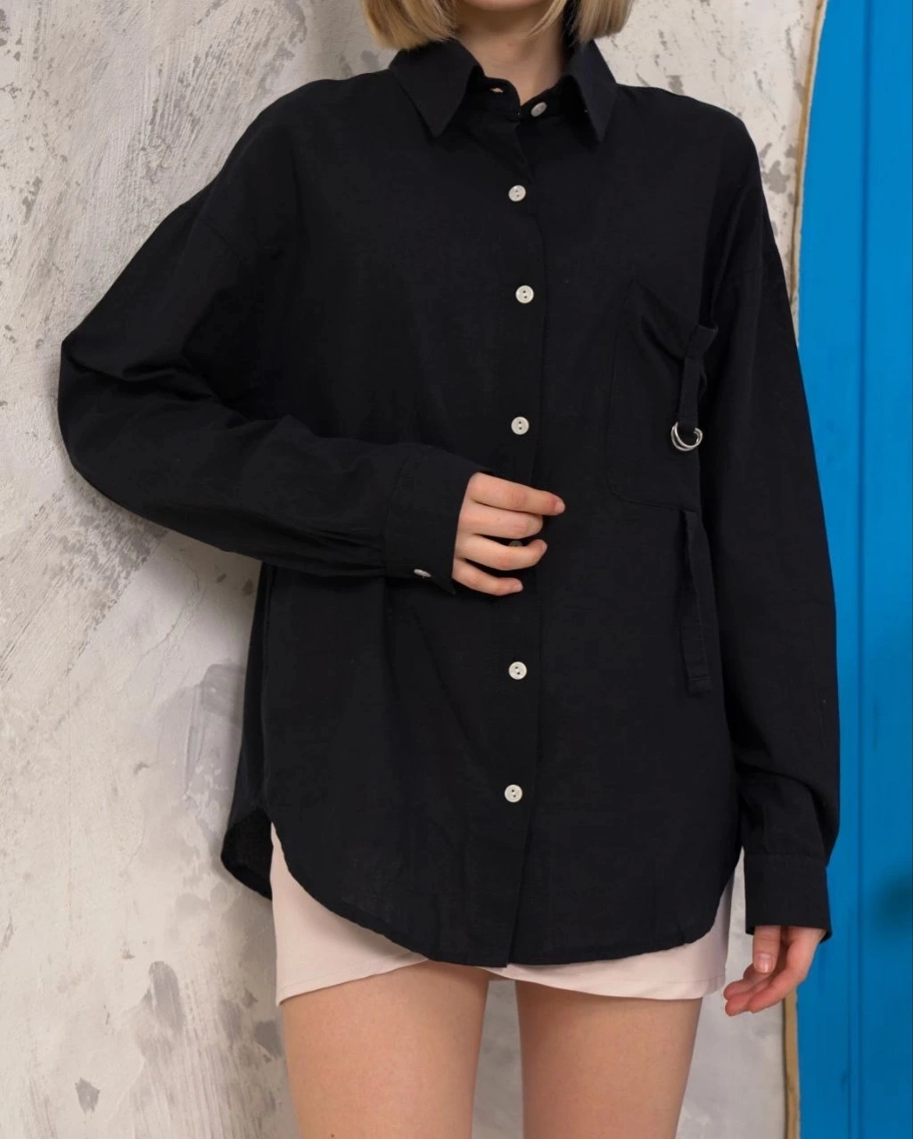 Relax fit keten gömlek siyah s255349--Relax fit keten gömlek siyah s255349, şıklık ve rahatlığı bir arada sunar. Ürün Özellikleri: Keten kumaştan üretilmiştir. Relax fit kesime sahiptir. Siyah renk ile klasik bir görünüm sunar. V yaka detayı ile fark tır. Uzun kollu ve düğmeli manşetlidir. Kadın giyim kategorisinde yer almaktadır. Bu şık siyah gömleği iş hayatında, özel davetlerde ya da günlük şıklıkta rahatlıkla tercih edebilirsiniz.