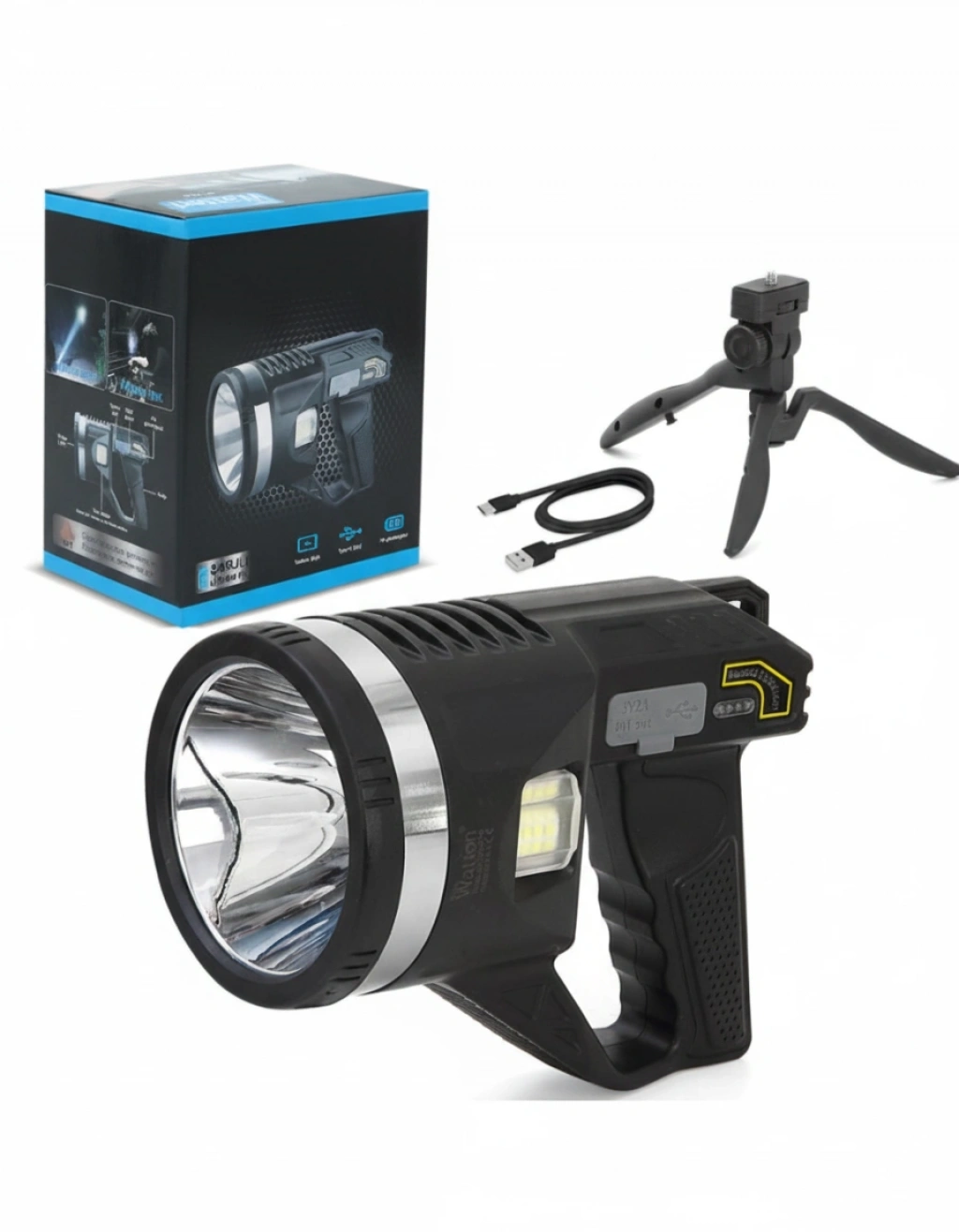 Şarjlı Dev Boy El Feneri Tripod Ayaklı Parlak LED El Lambası Kamp, Av ve Güvenlik İçin İdeal Karanlıkta asla yarı yolda kalma! Şarjlı Dev Boy El Feneri Tripod Ayaklı Parlak LED El Lambası , güçlü LED teknolojisi ve sabit duruş sağlayan tripod ayakları ile hem profesyonel hem de günlük kullanım için mükemmel bir çözümdür. Bu yüksek güçlü el feneri, kamp, avcılık, devriye, tamir işleri ve acil durumlar için idealdir. Şarj edilebilir bataryası sayesinde uzun süreli kullanım sunar; kablo derdi , her an hazır! Öne Çıkan Özellikler Süper parlak LED ışık ile geniş alan aydınlatması Tripod ayaklı tasarım: Eller ser kullanım kolaylığı Şarjlı sistem: Uzun ömürlü, enerji tasarruflu Dalı gövde yapısı: Zorlu hava koşullarına dalıdır Taşınabilir ve hafif: Kamp, güvenlik görevlileri, teknisyenler ve açık hava aktiviteleri için idealdir Kullanım Alanları Kamp ve doğa yürüyüşleri Avcılık ve balıkçılık Güvenlik ve devriye görevleri Elektrik kesintileri ve acil durumlar ÖZELLİKLER : Boyutlar :Uzunluk 18,5 cm Ön Yüzey 10 cm Işık Özelliği :P50 LED Işık Mesafesi :Net : 150-750 Işık Rengi :Beyaz Çalışma Süresi :4-8-24 Saat Gövde Malzemesi :Sert Plastik Kullanım Şekli :5 Mod Aydınlatma Nokta-Geniş-Çakar ( Flaş ) Kullanım Özellikleri :Elde Kullanım Teknik Özellikleri :Şarj Edilebilir Akü ( 8800 Mah Batarya ) Lityum-iyon TYPE-C ŞARJ ( POWERBANK ) Kutu İçeriği :Ürün TYPE-C + Taşıma Askısı Ampül Ömrü :100.000 Saattir Kullanım Yeri :Av, Kamp, Araba, Otel, Restorant Tasarruflu Enerji Harcama Özelliği Önemli Uyarılar :Direk Göz İle Temas Ettirmeyiniz İlk Kullanımdan Önce 12-16 saat Şarj Ediniz.